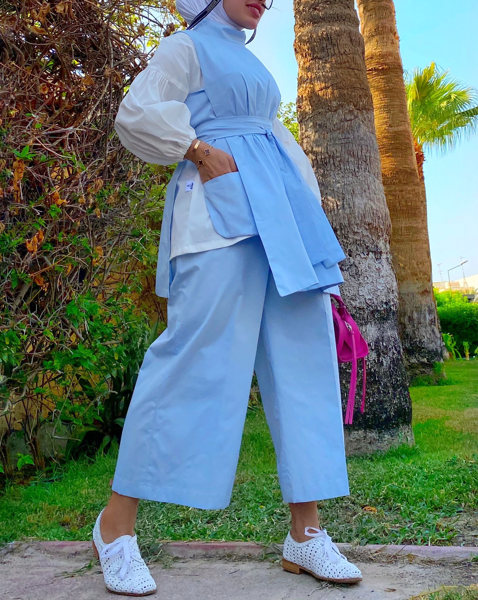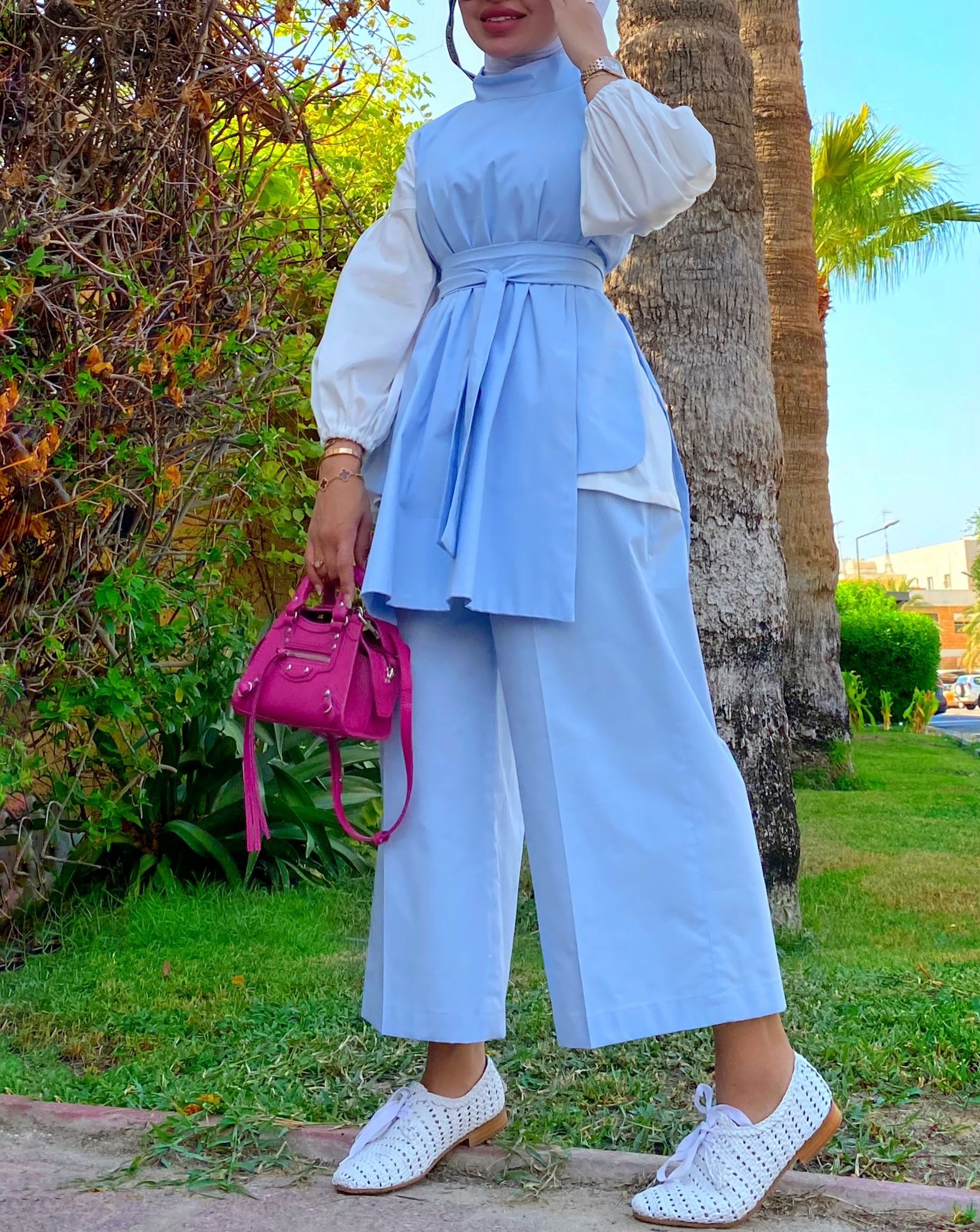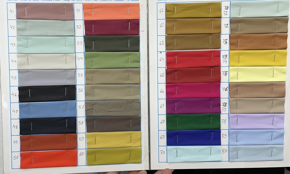 A suit of 3 pieces, available in two colors. The color of the shirt is white. Please write the color number in the notes