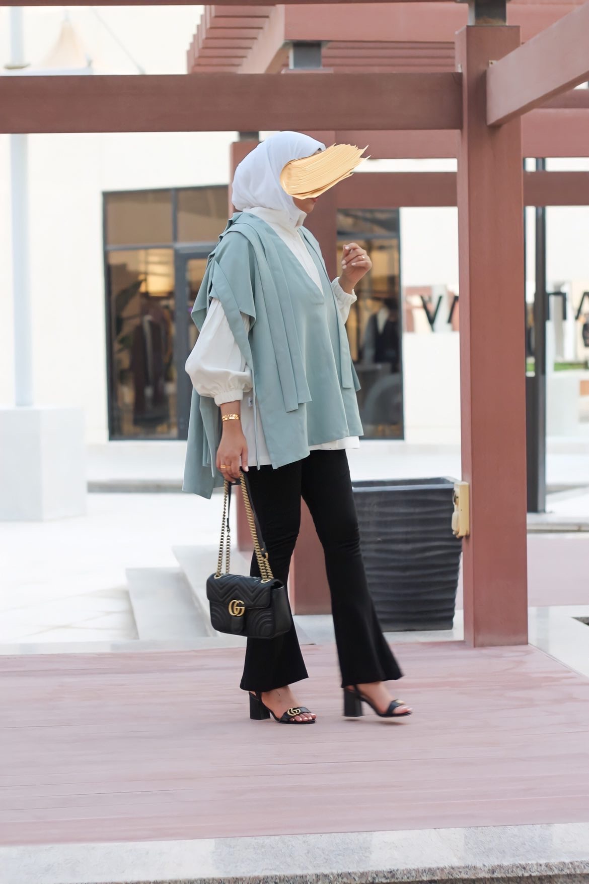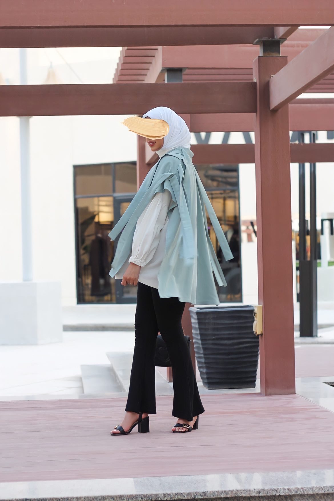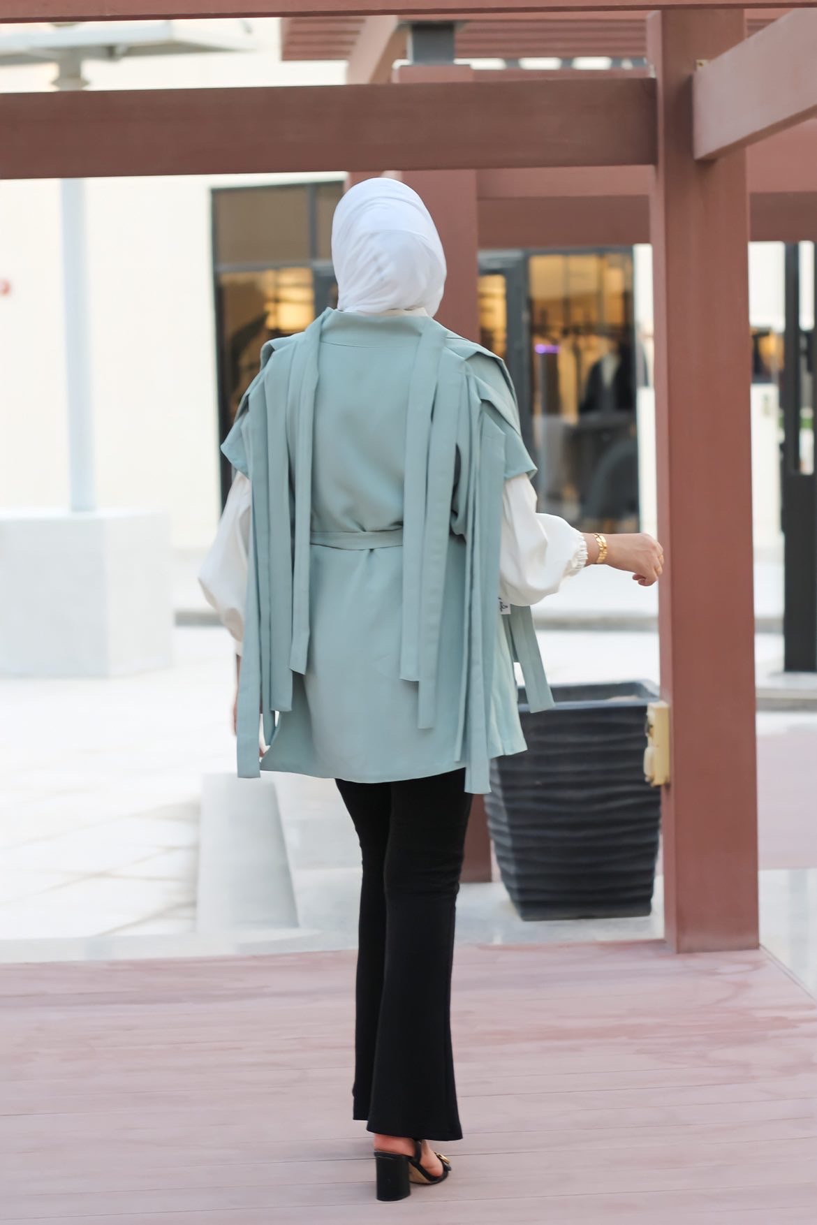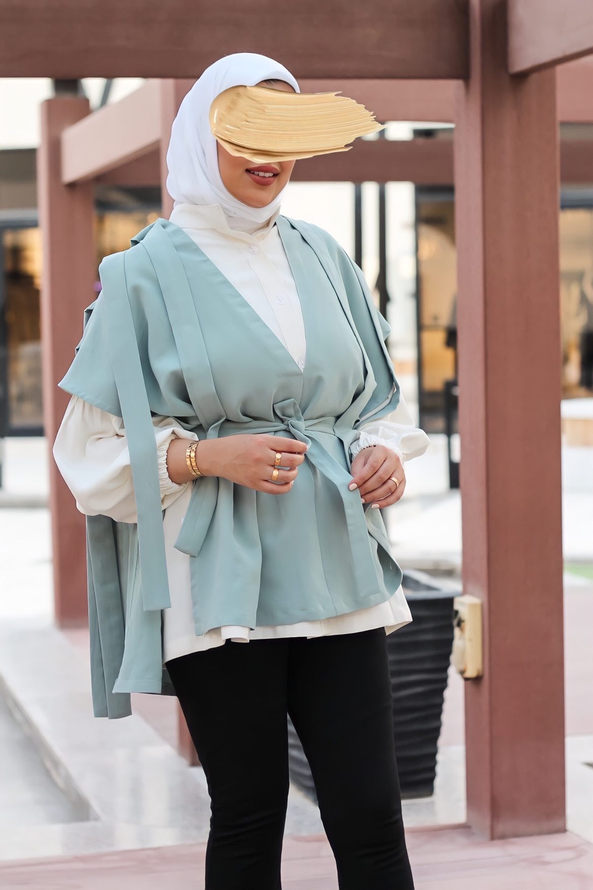 Two-piece top, off-white shirt and vest available in two colors, length 28 inches