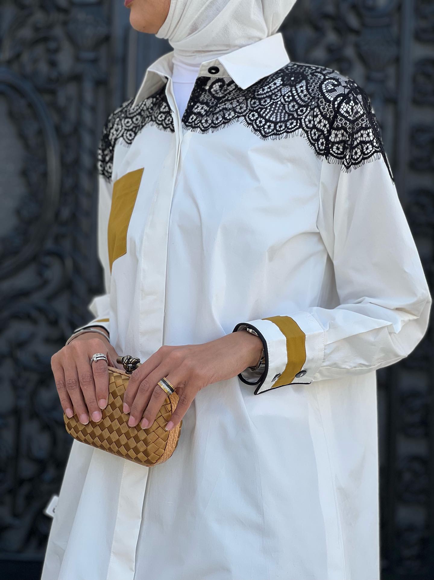 off-white shirt, length 38 inches, the fabric does not tear