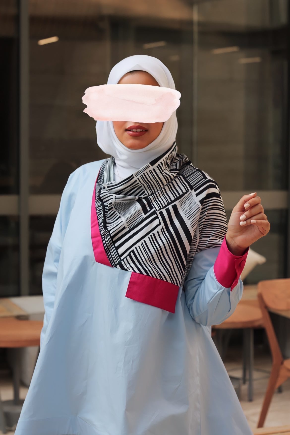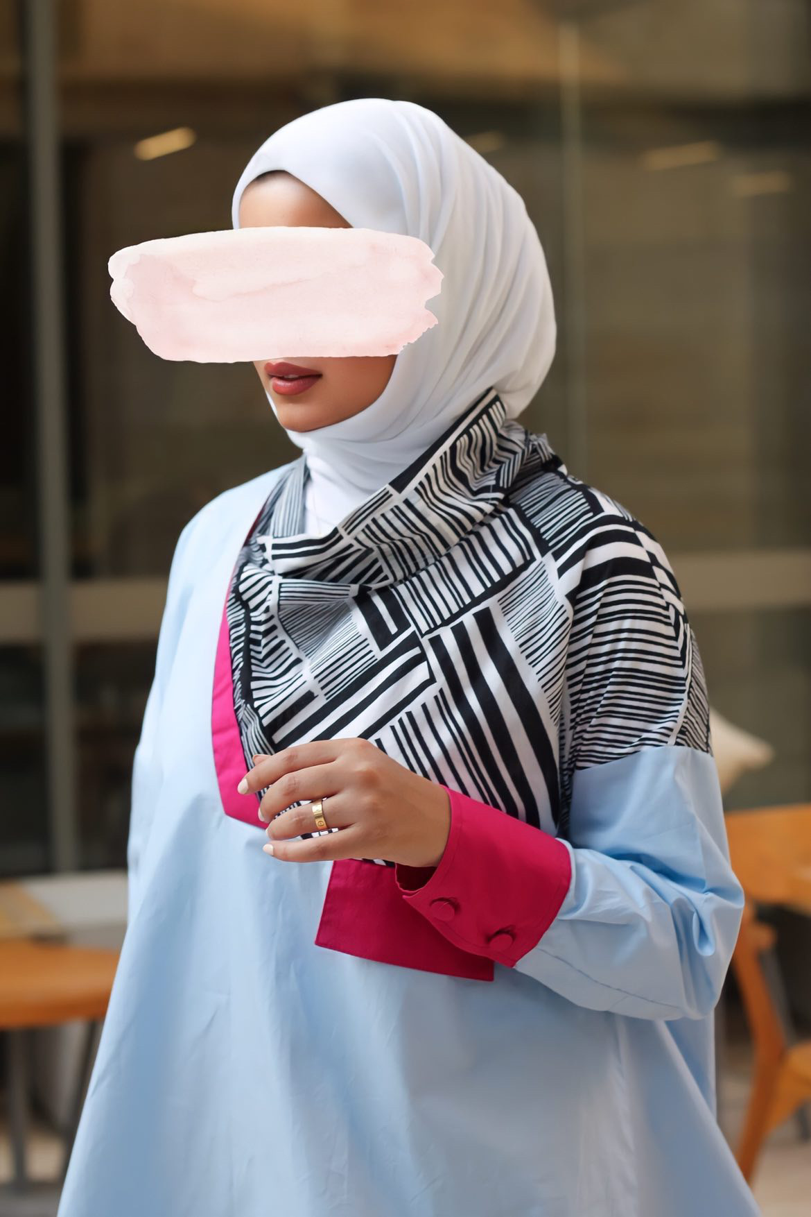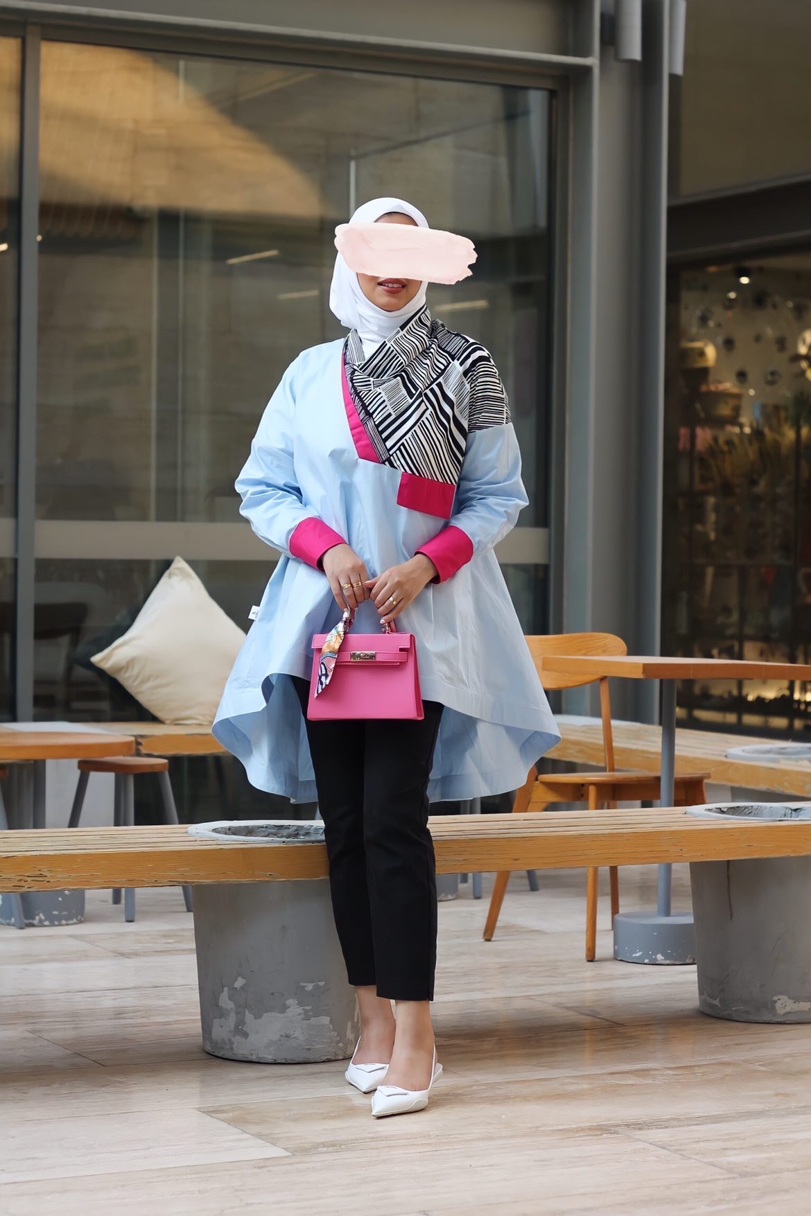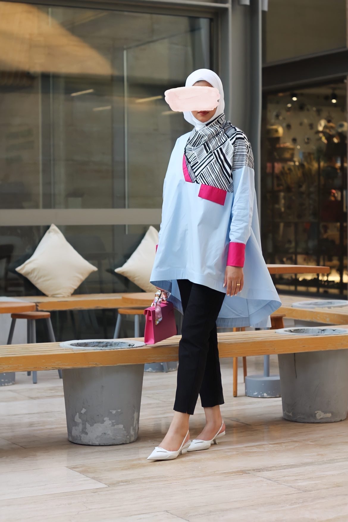 Summer jeans jacket, 35 inches long. Note the white adhesive sleeves to the jacket