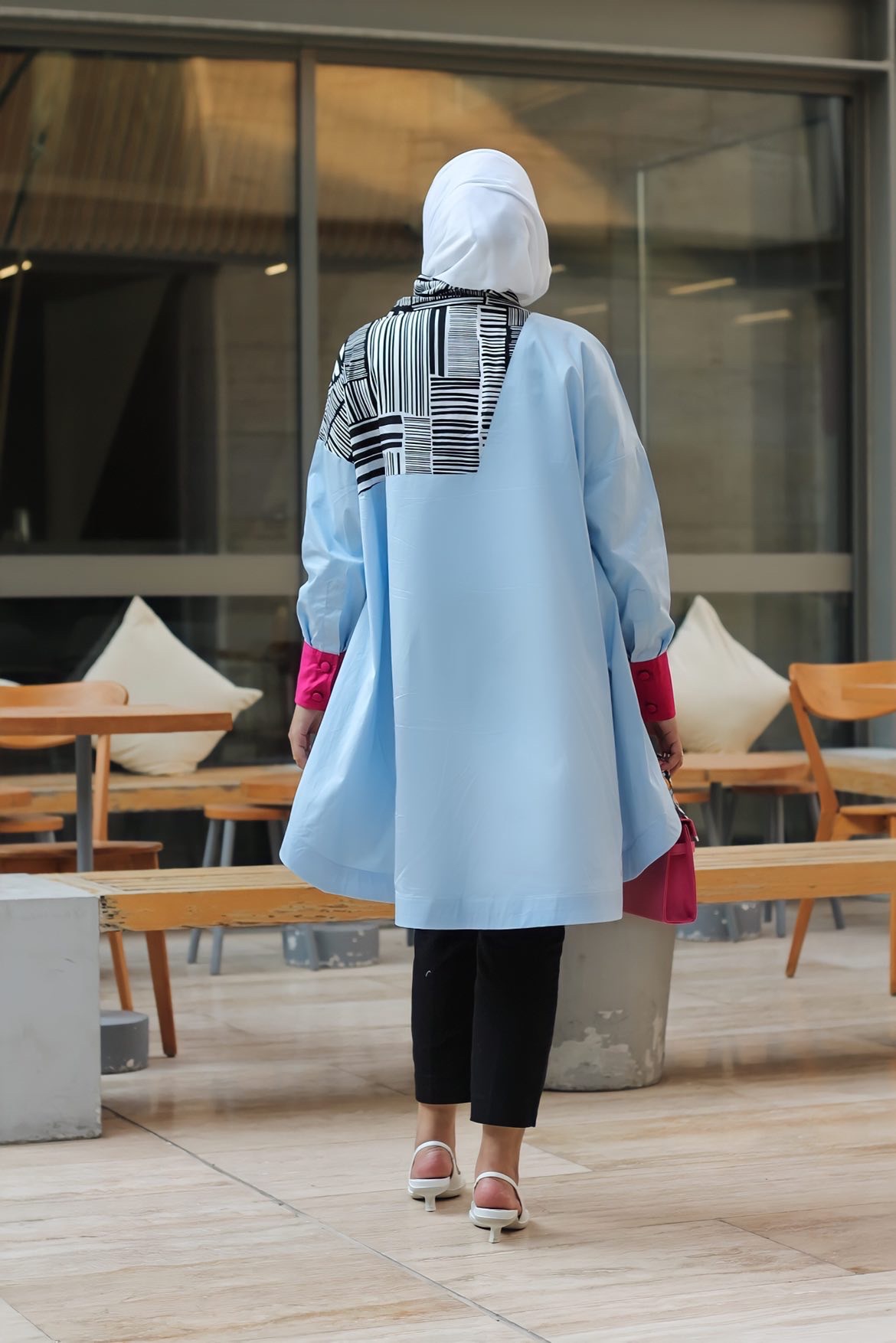 Over size, length 40 inches, available in colors. Note, the shirt color is fixed white