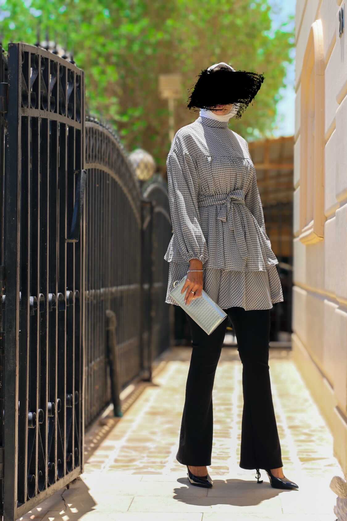 Summer jeans jacket, 35 inches long. Note the white adhesive sleeves to the jacket