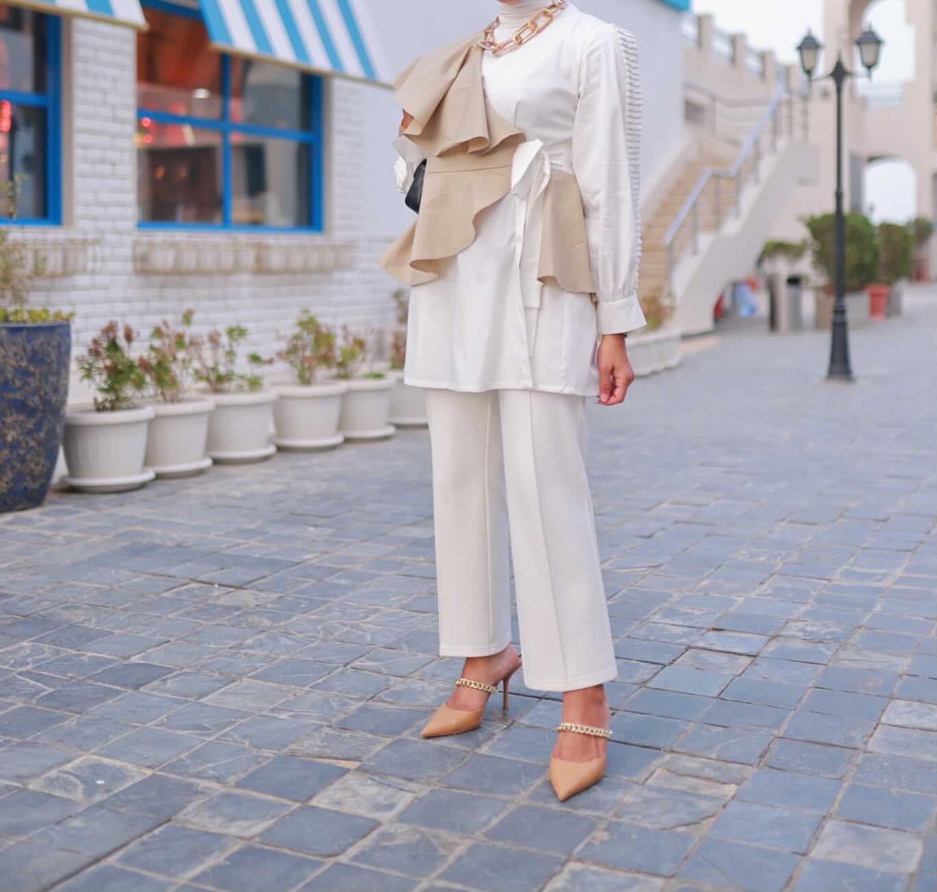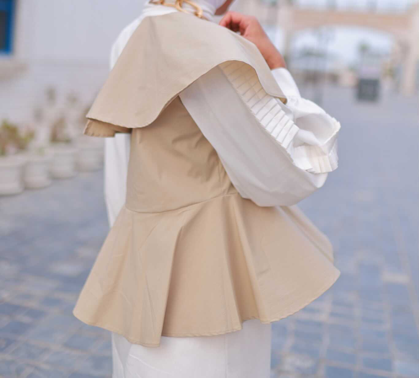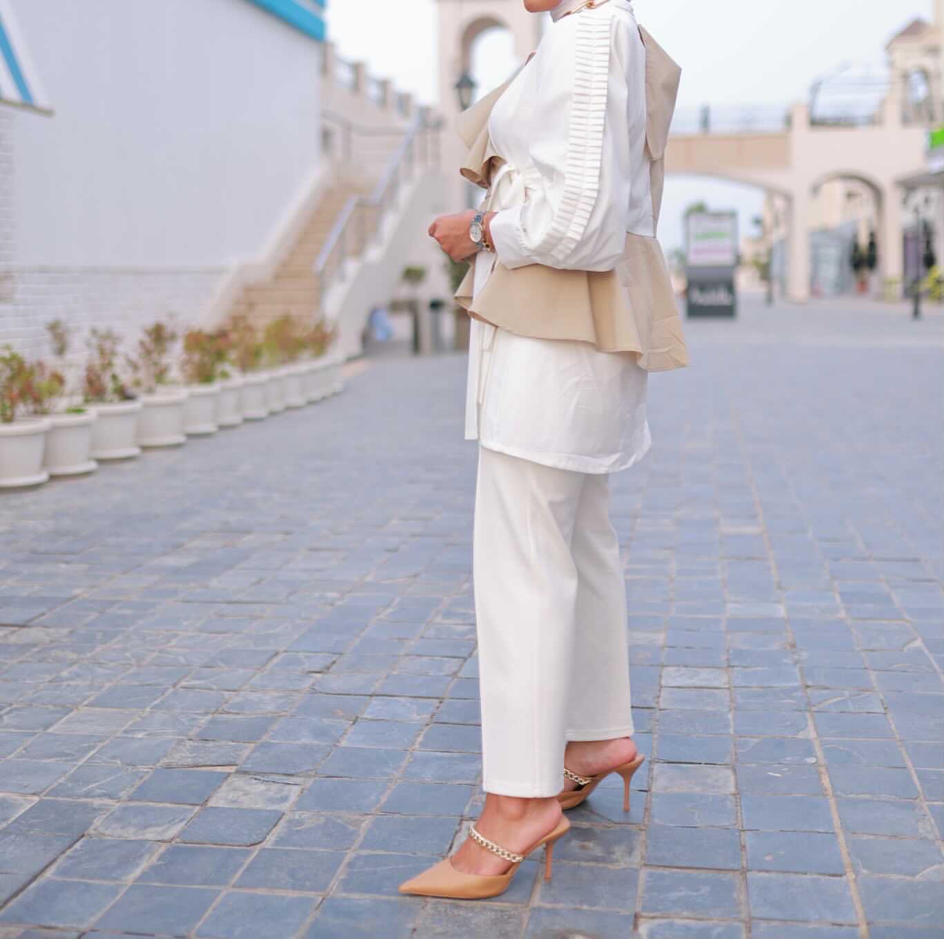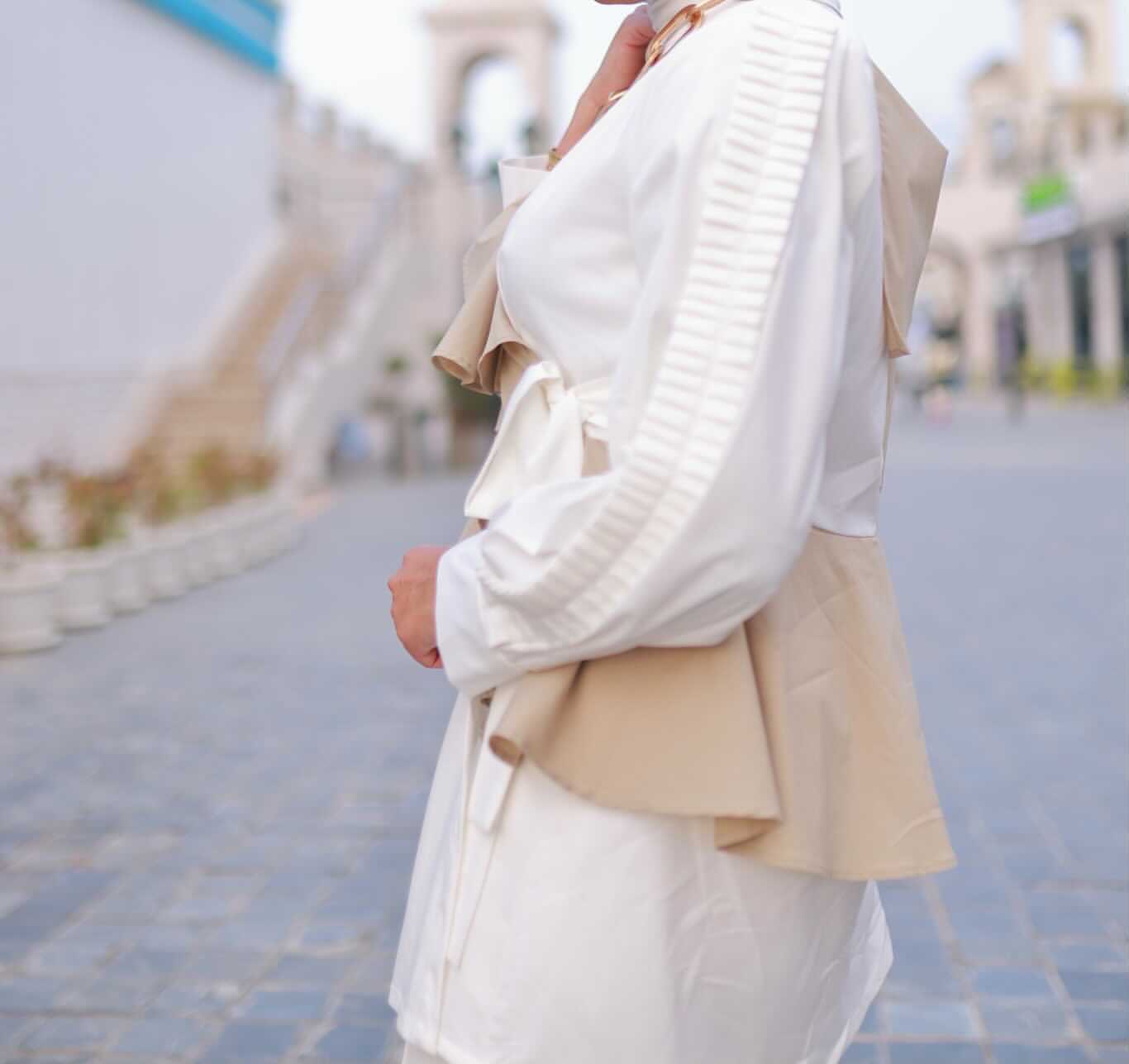 White and beige top