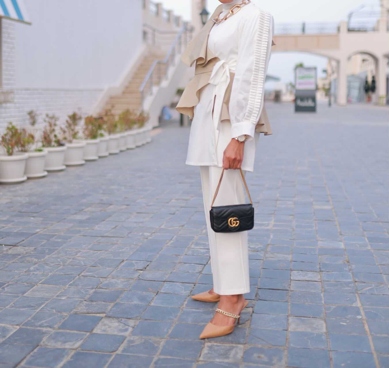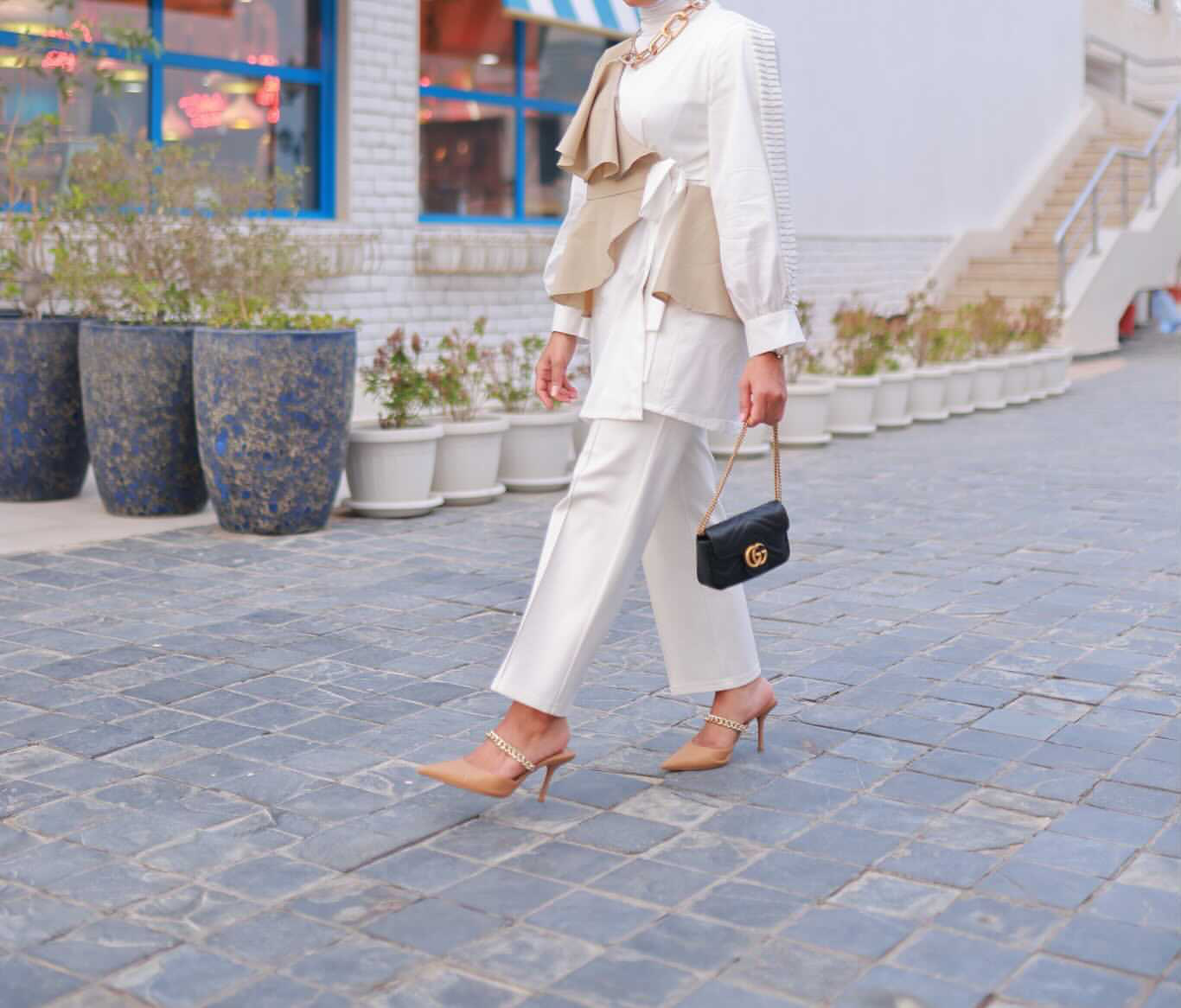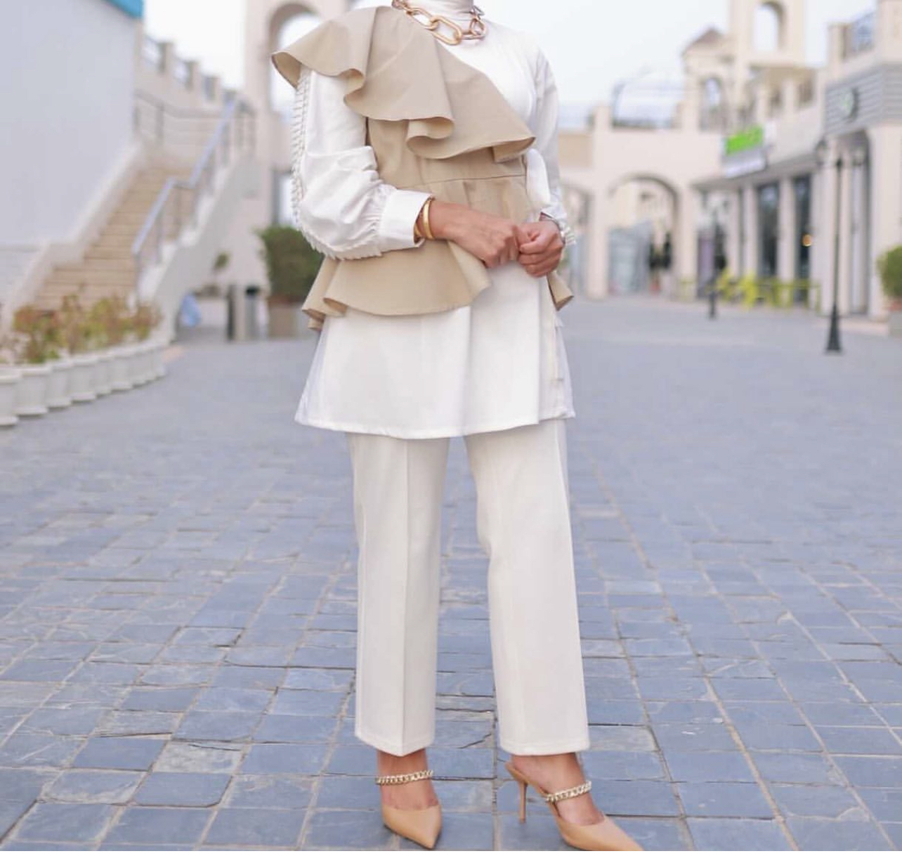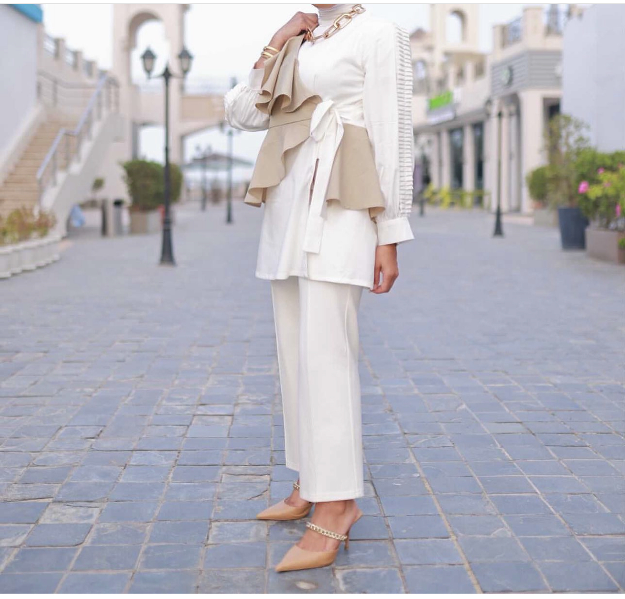 White and beige top