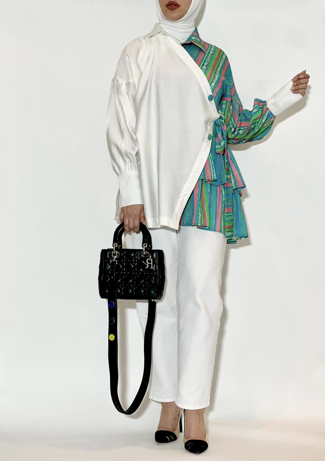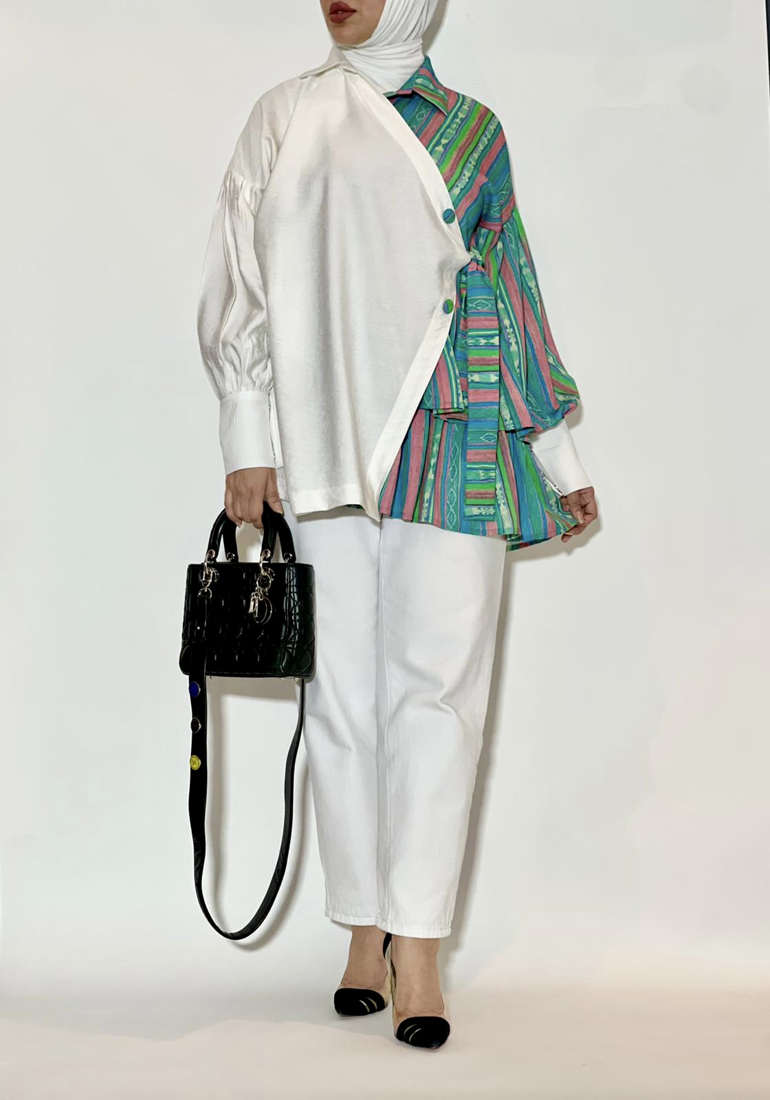 Over size, length 40 inches, available in colors. Note, the shirt color is fixed white