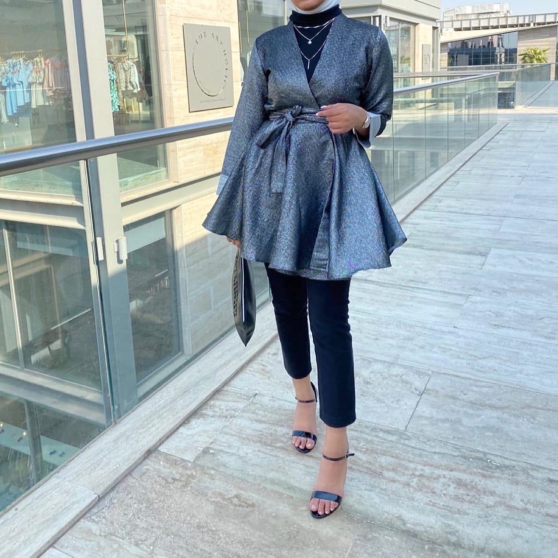 Summer jeans jacket, 35 inches long. Note the white adhesive sleeves to the jacket