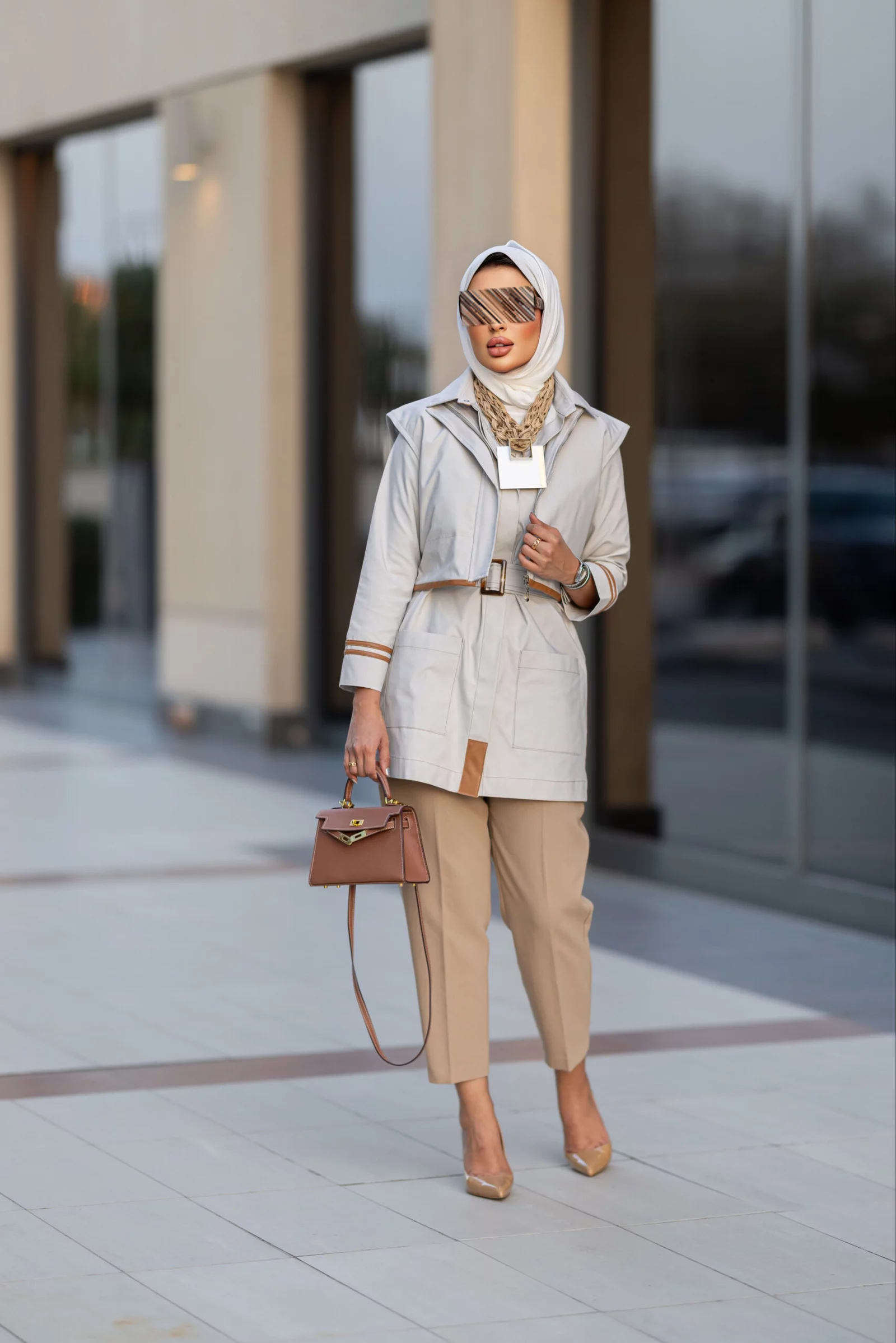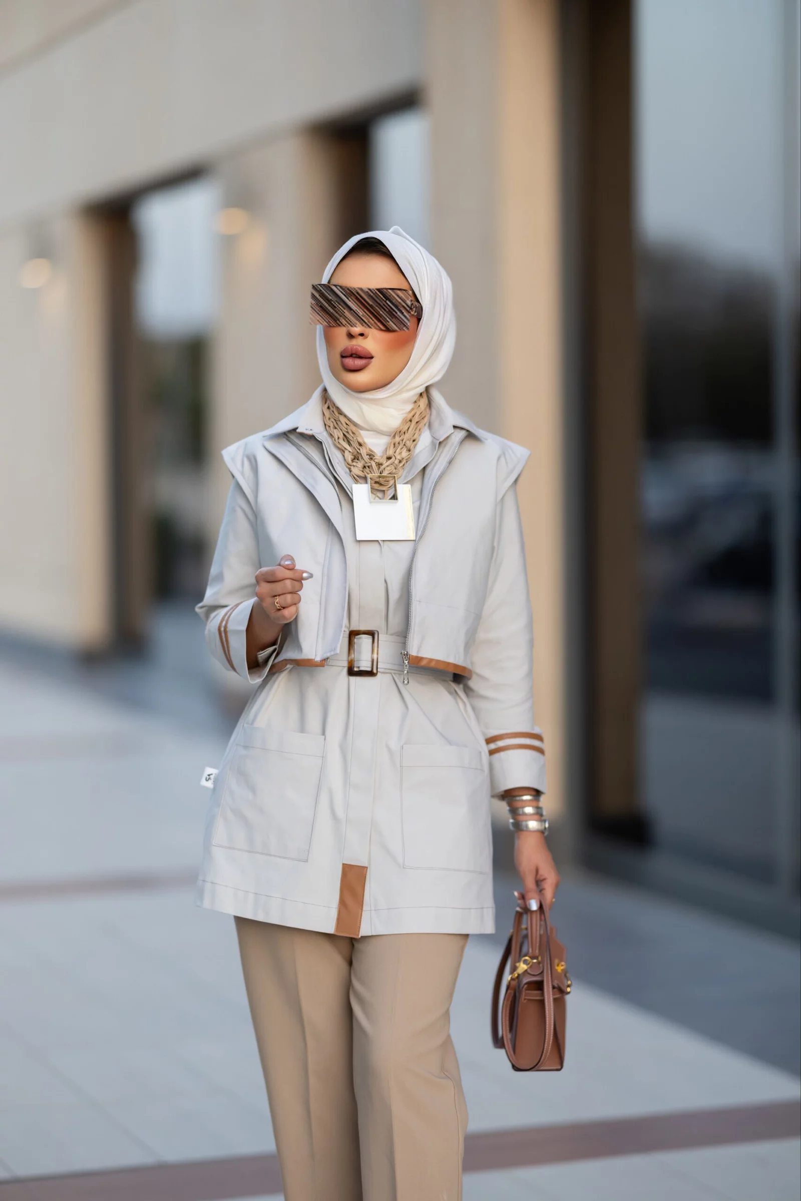 Two-tone trench coat with 40-inch belt