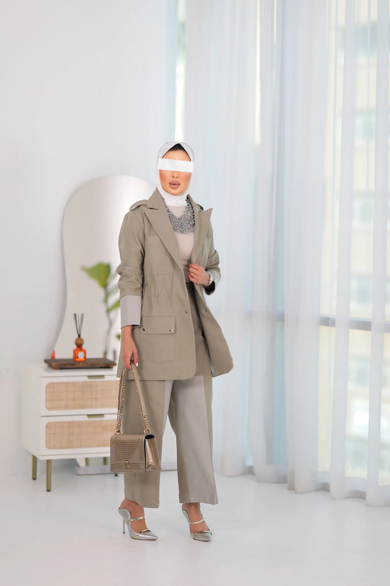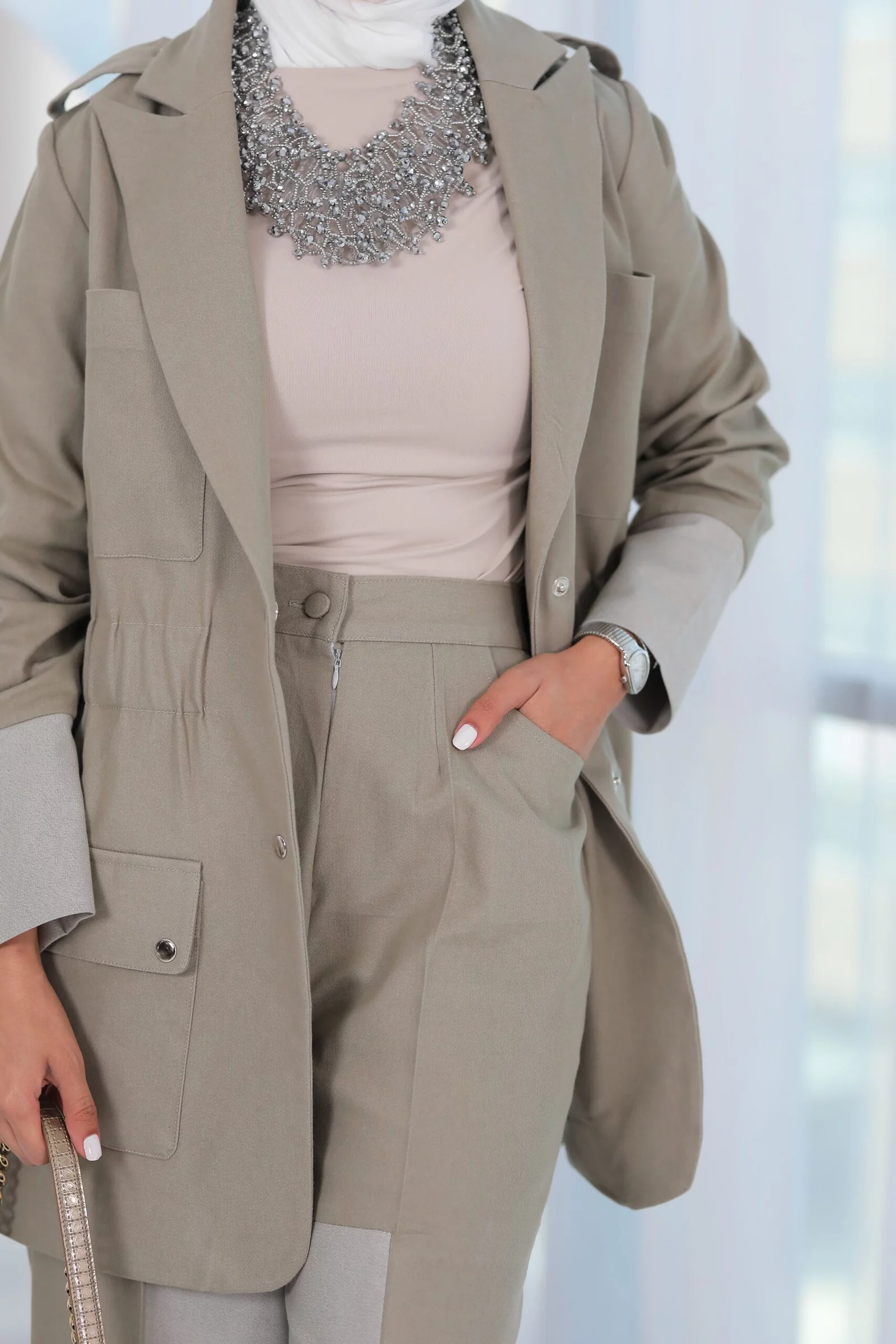 A two -piece jacket and photographed by Ruphi Rubaie jacket size