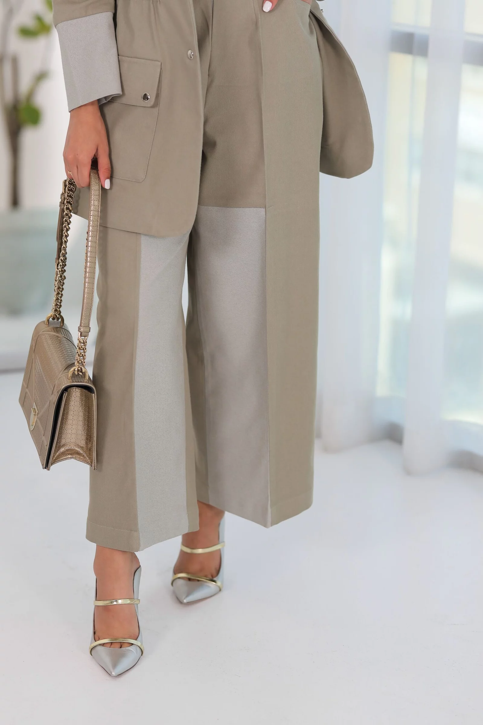 Two-piece suit with wide trousers