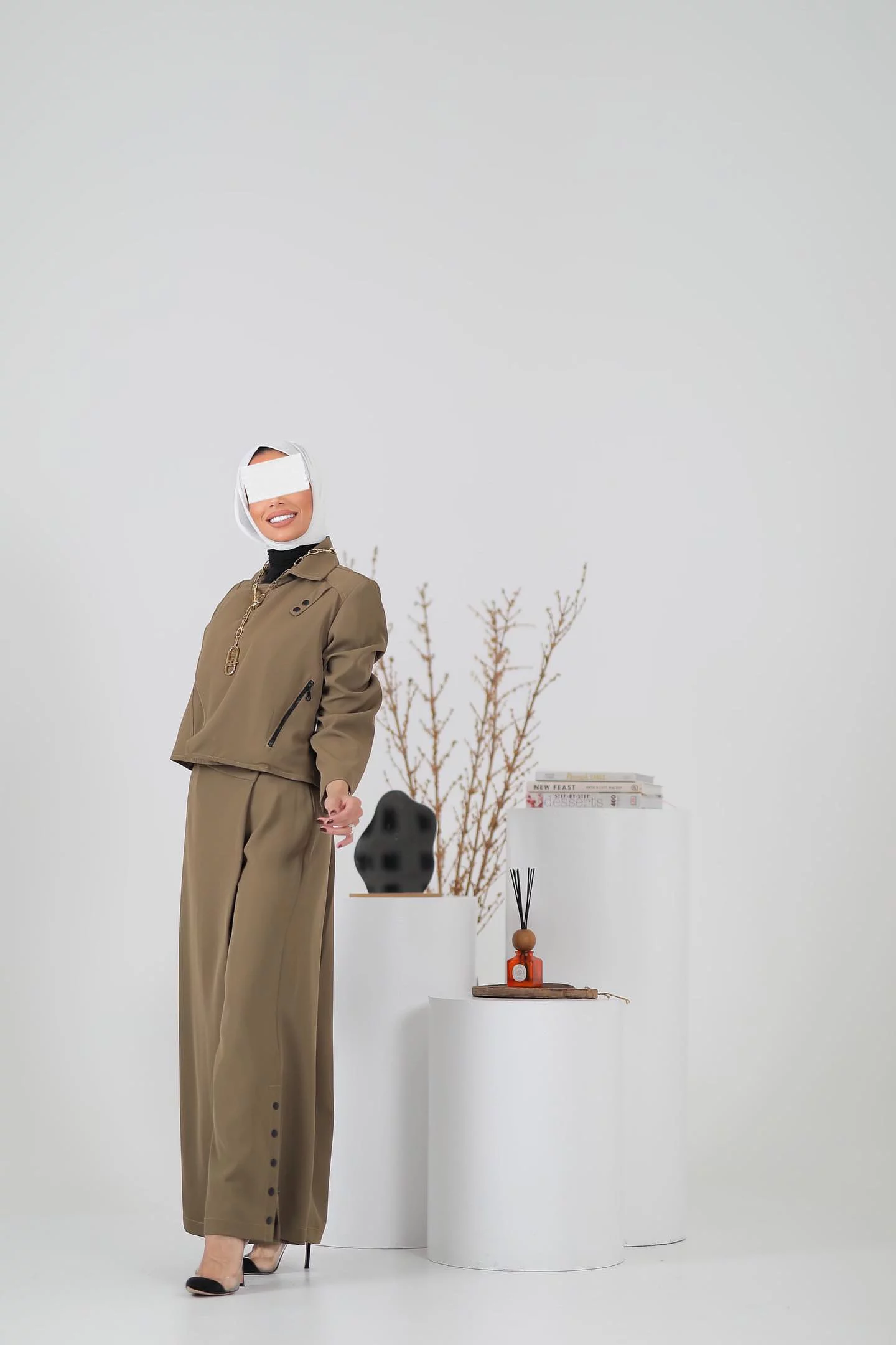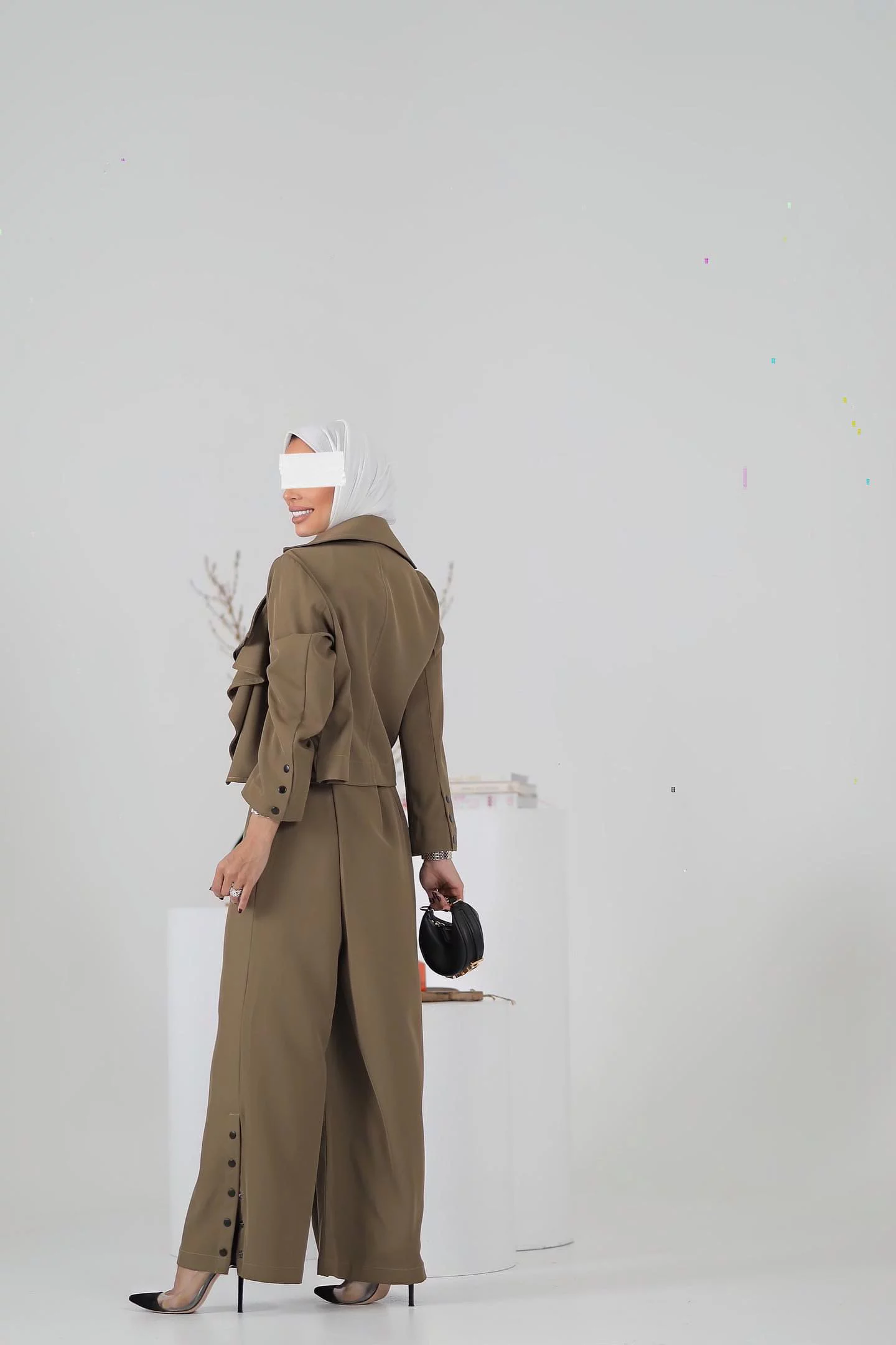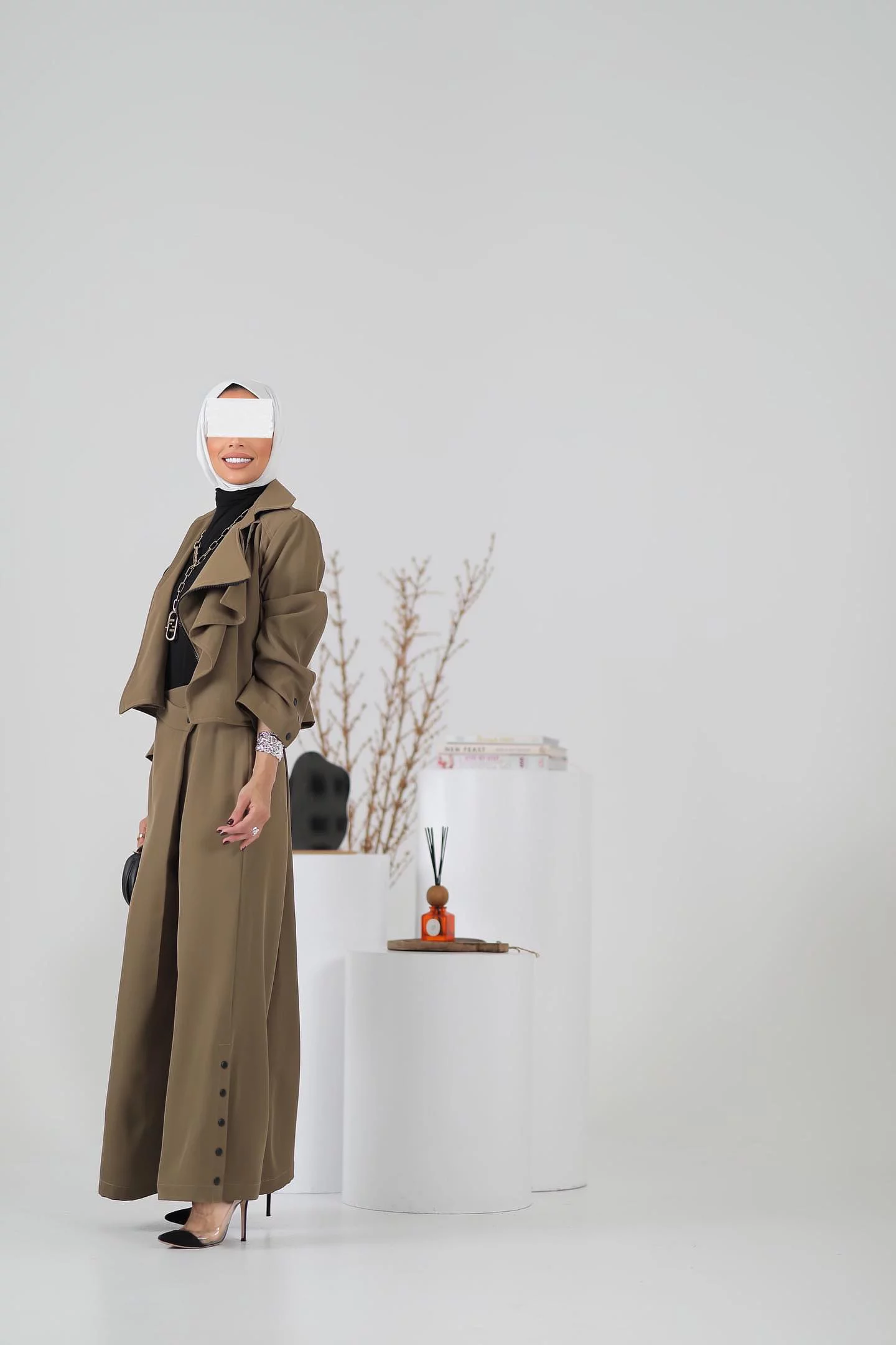 A two -piece jacket and photographed by Ruphi Rubaie jacket size