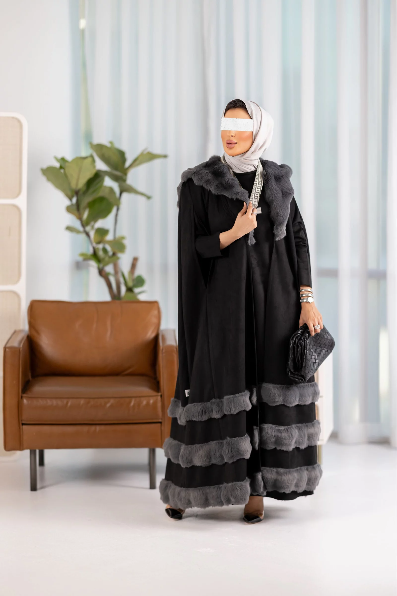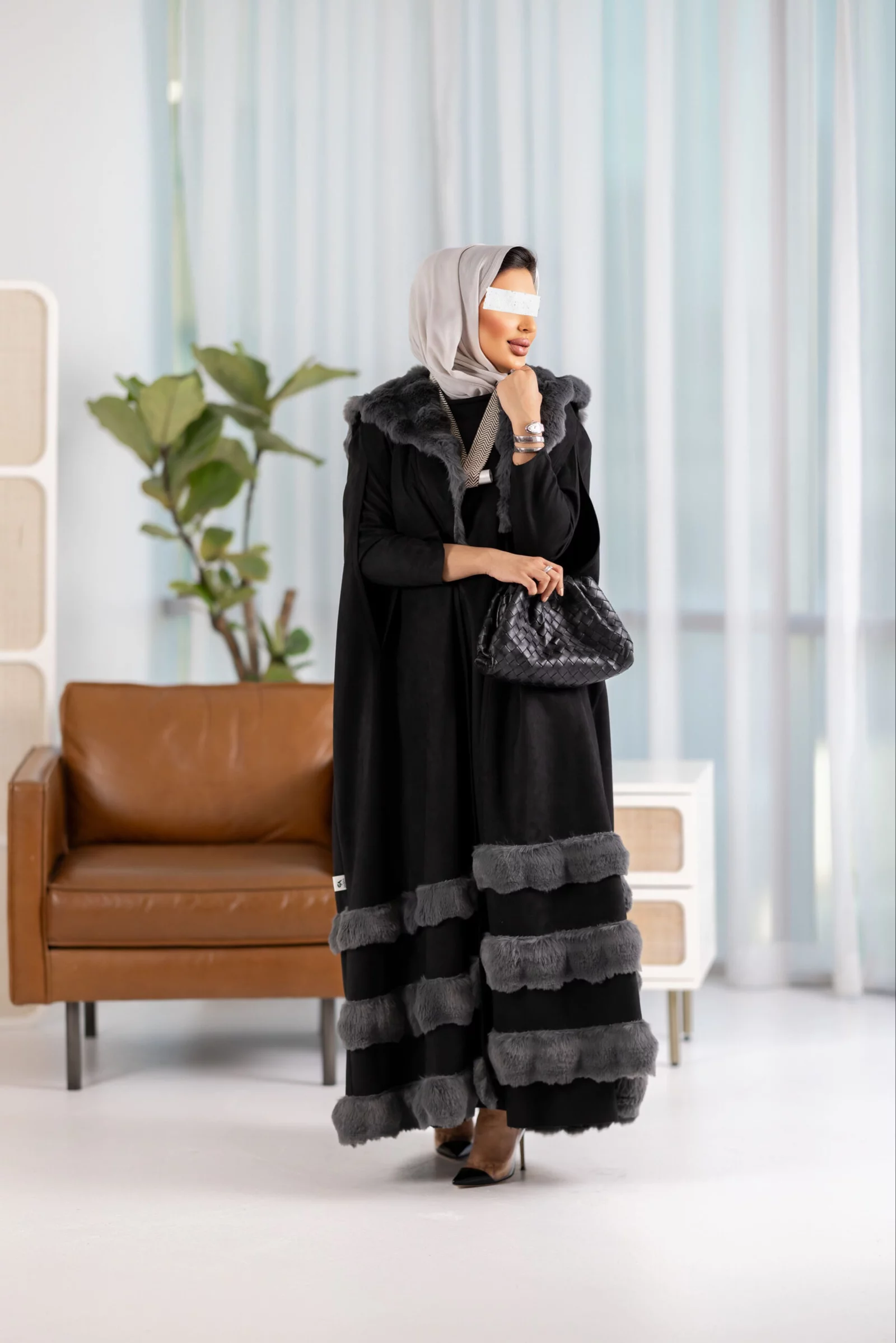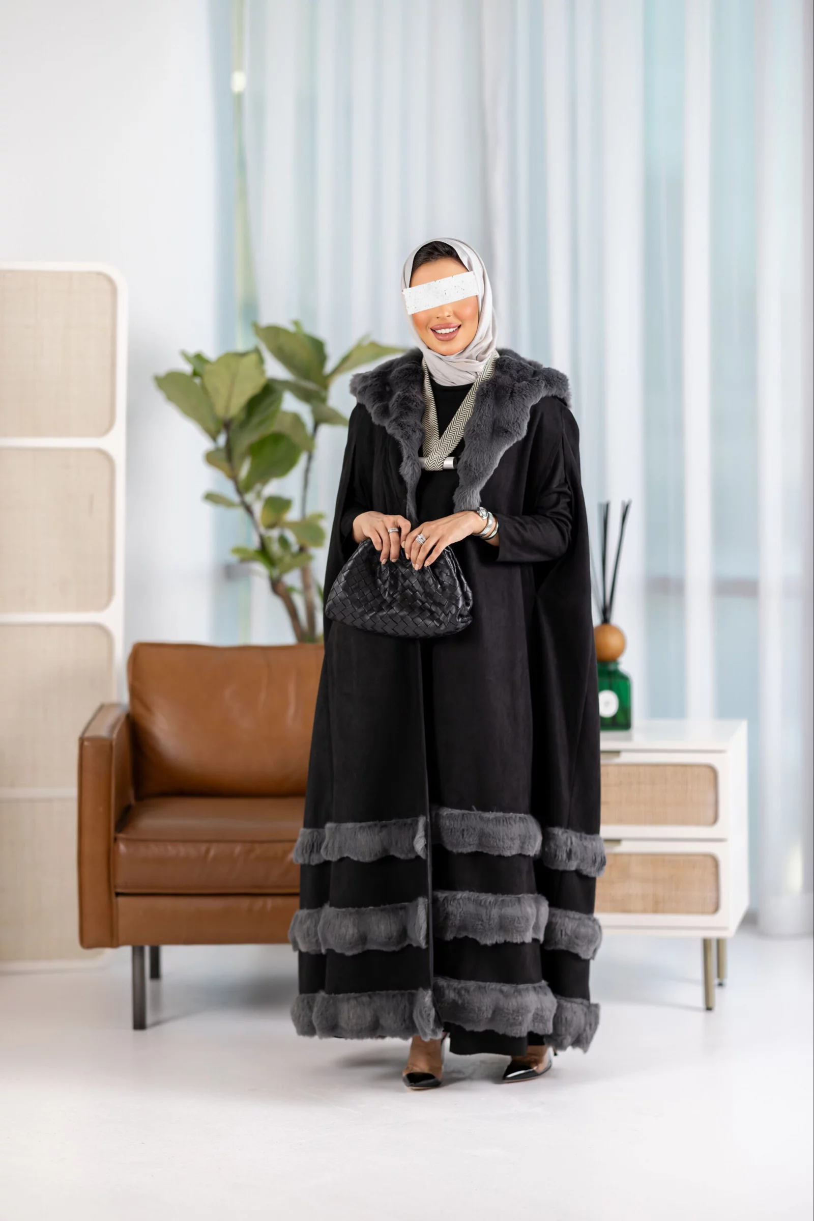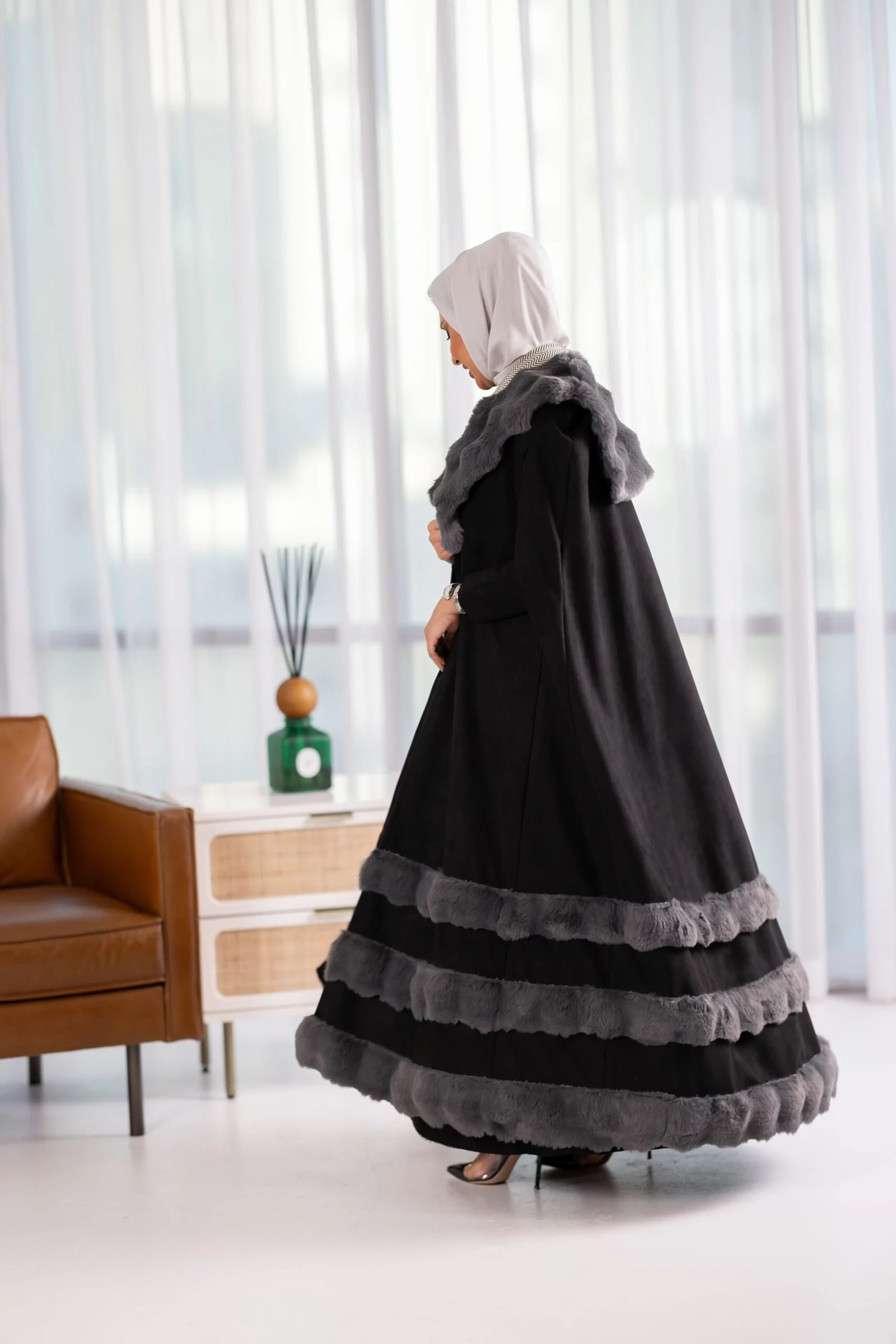 Two-piece suit, cape dress with fur, available in various colors