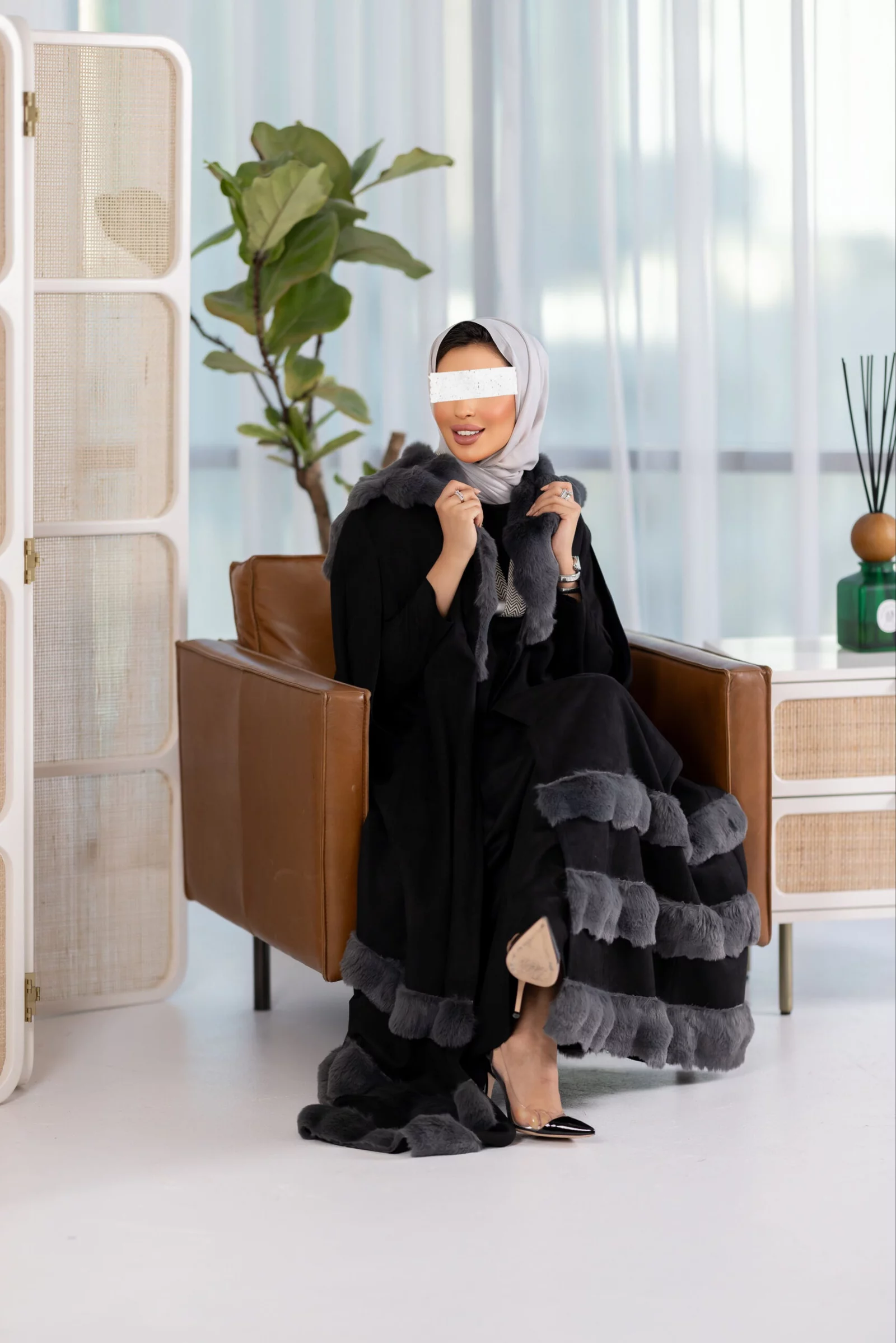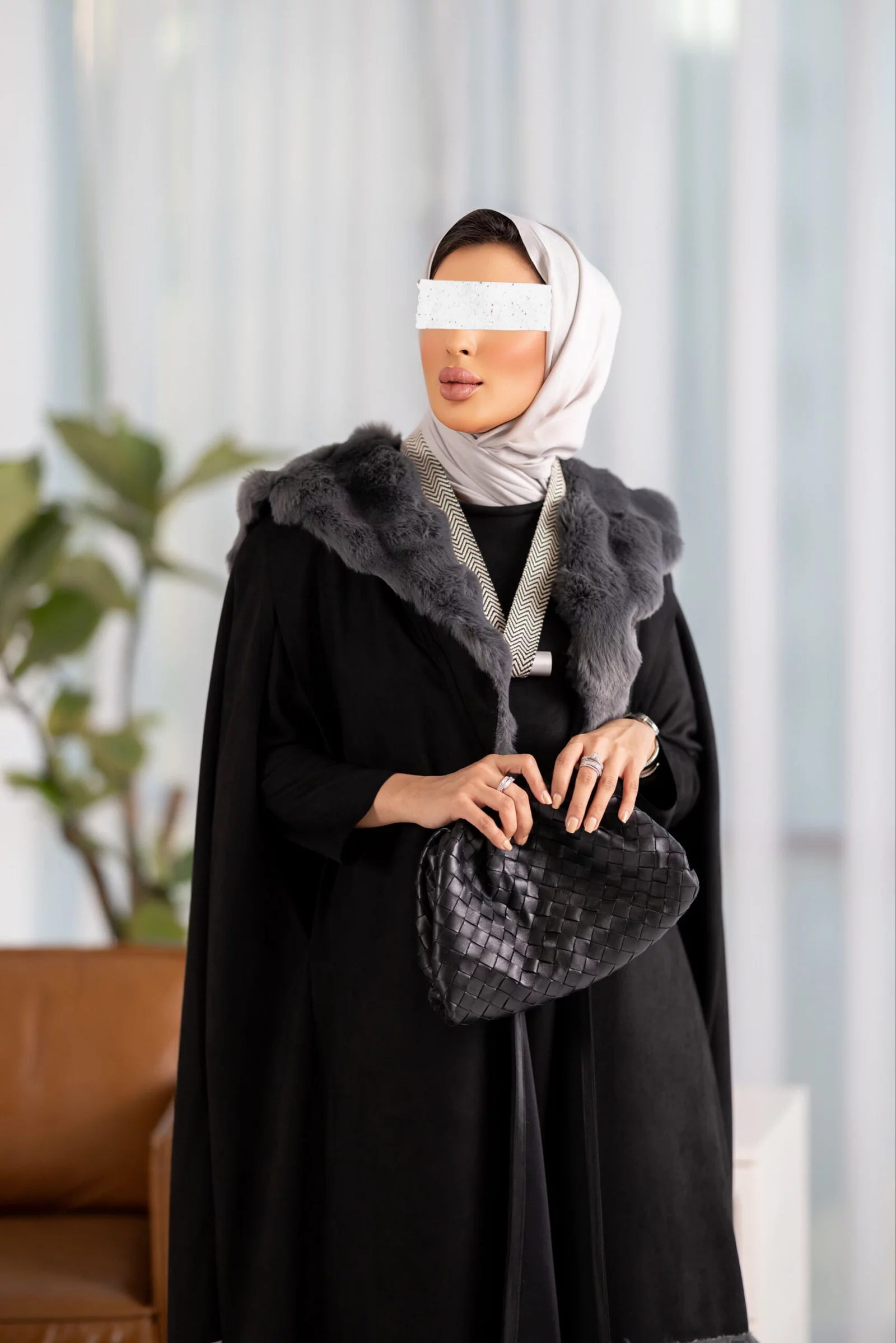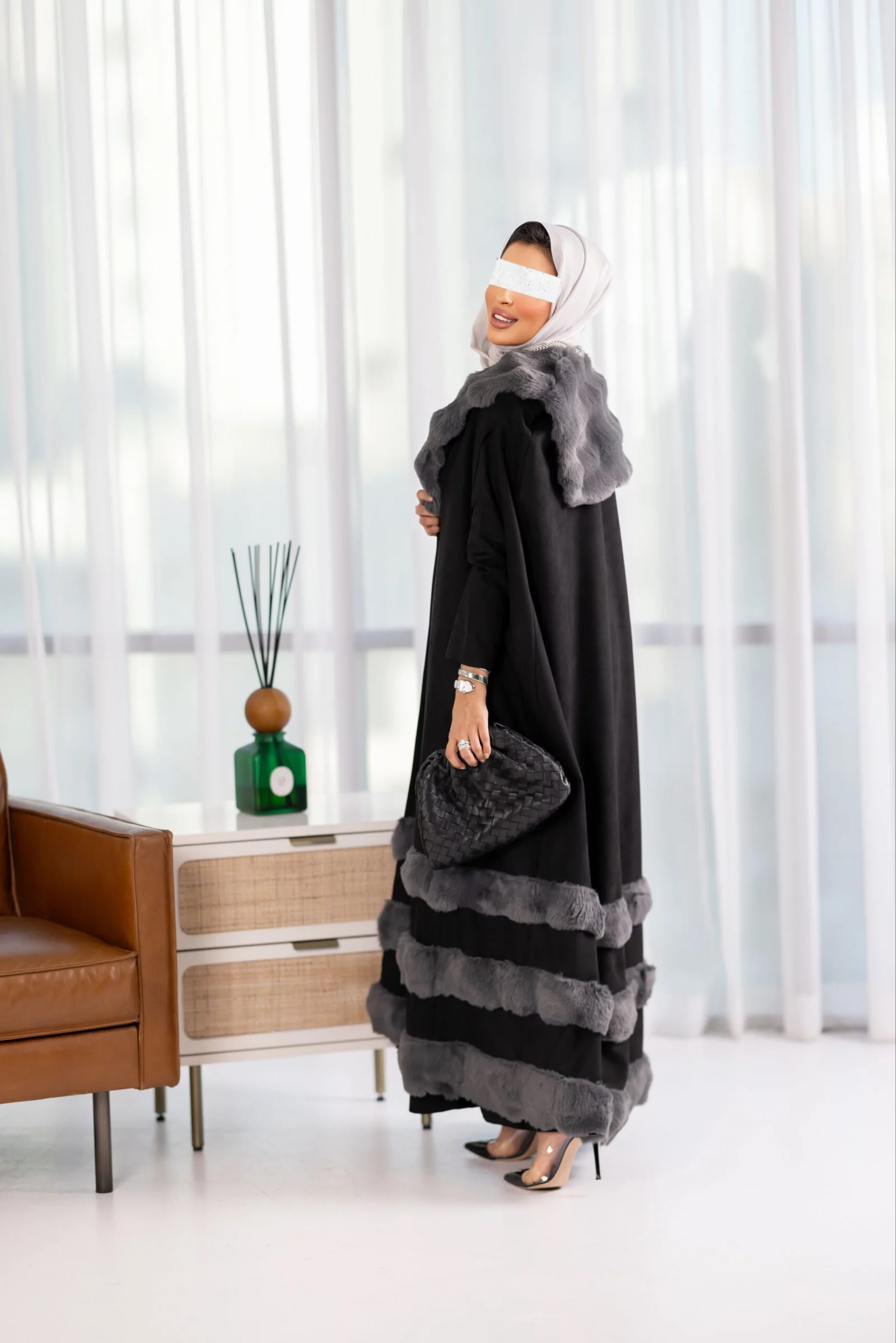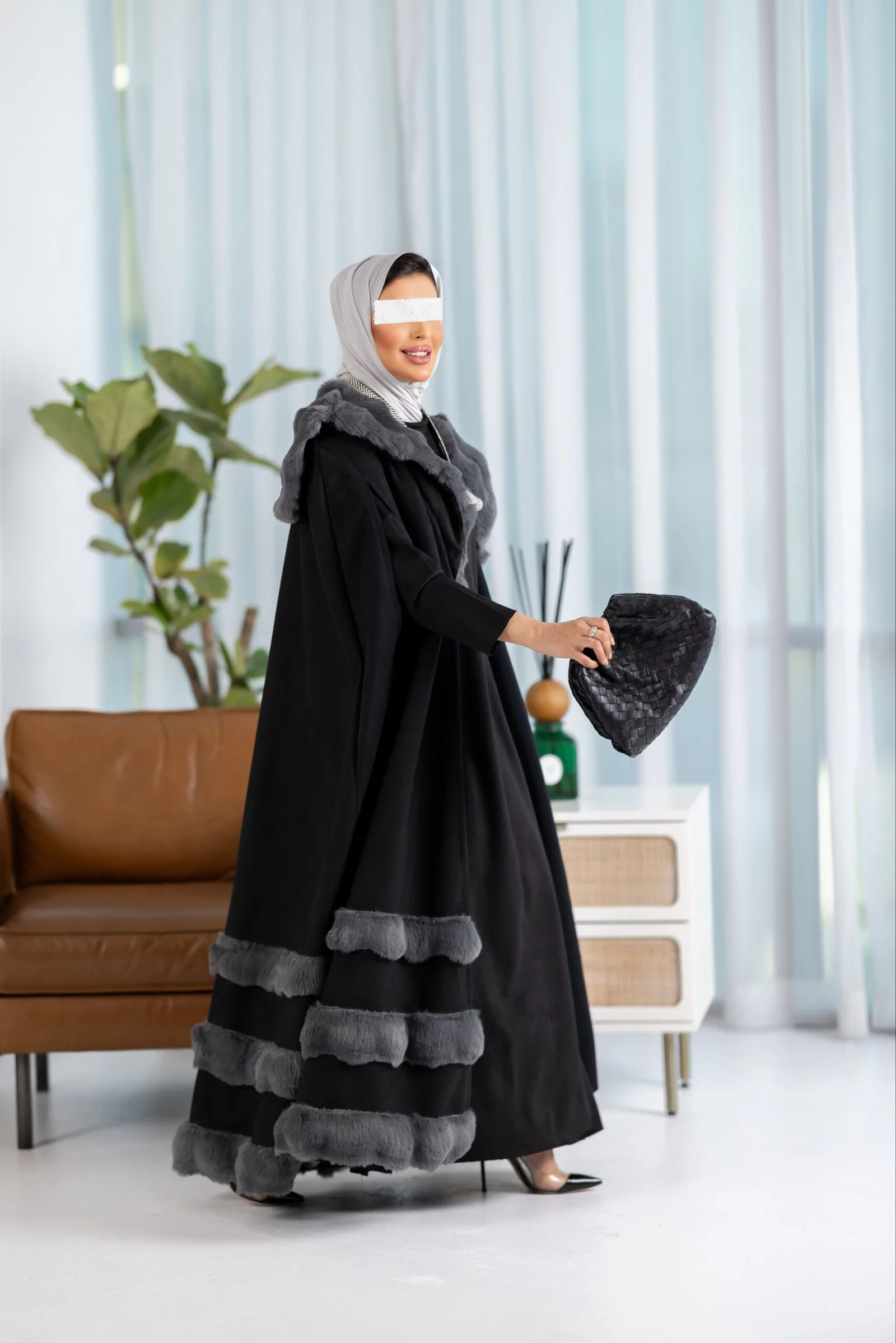 Two-piece suit, cape dress with fur, available in various colors