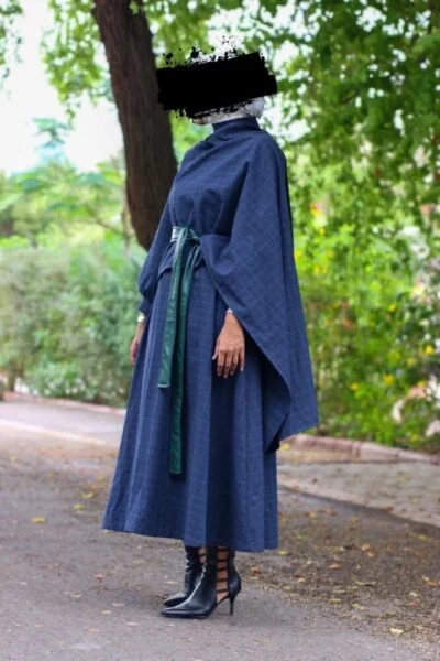 Two-piece suit, cape dress with fur, available in various colors