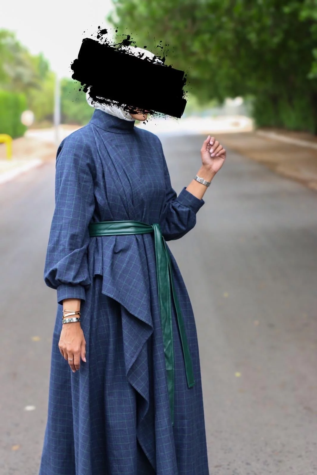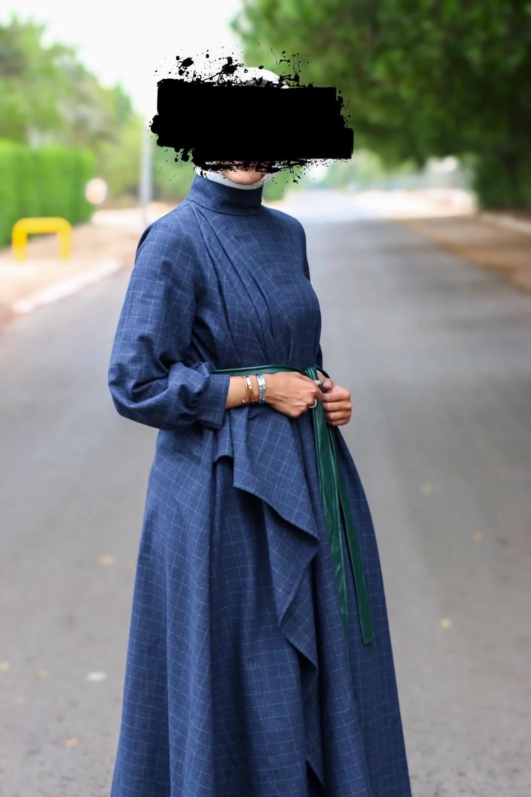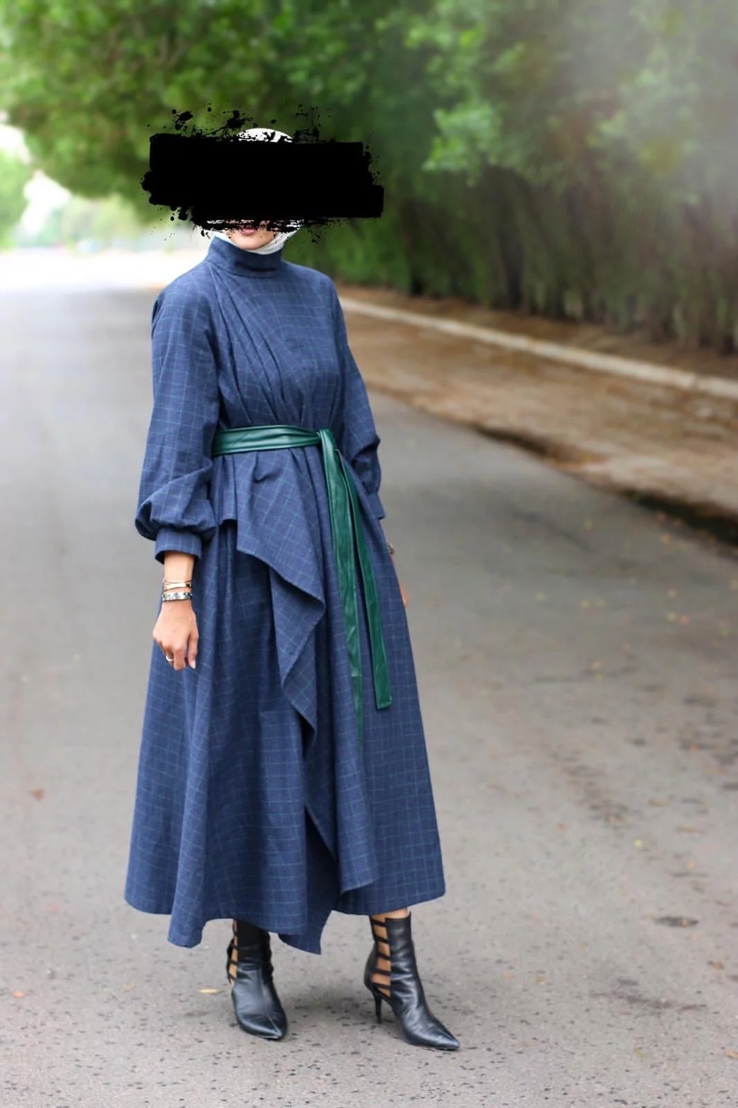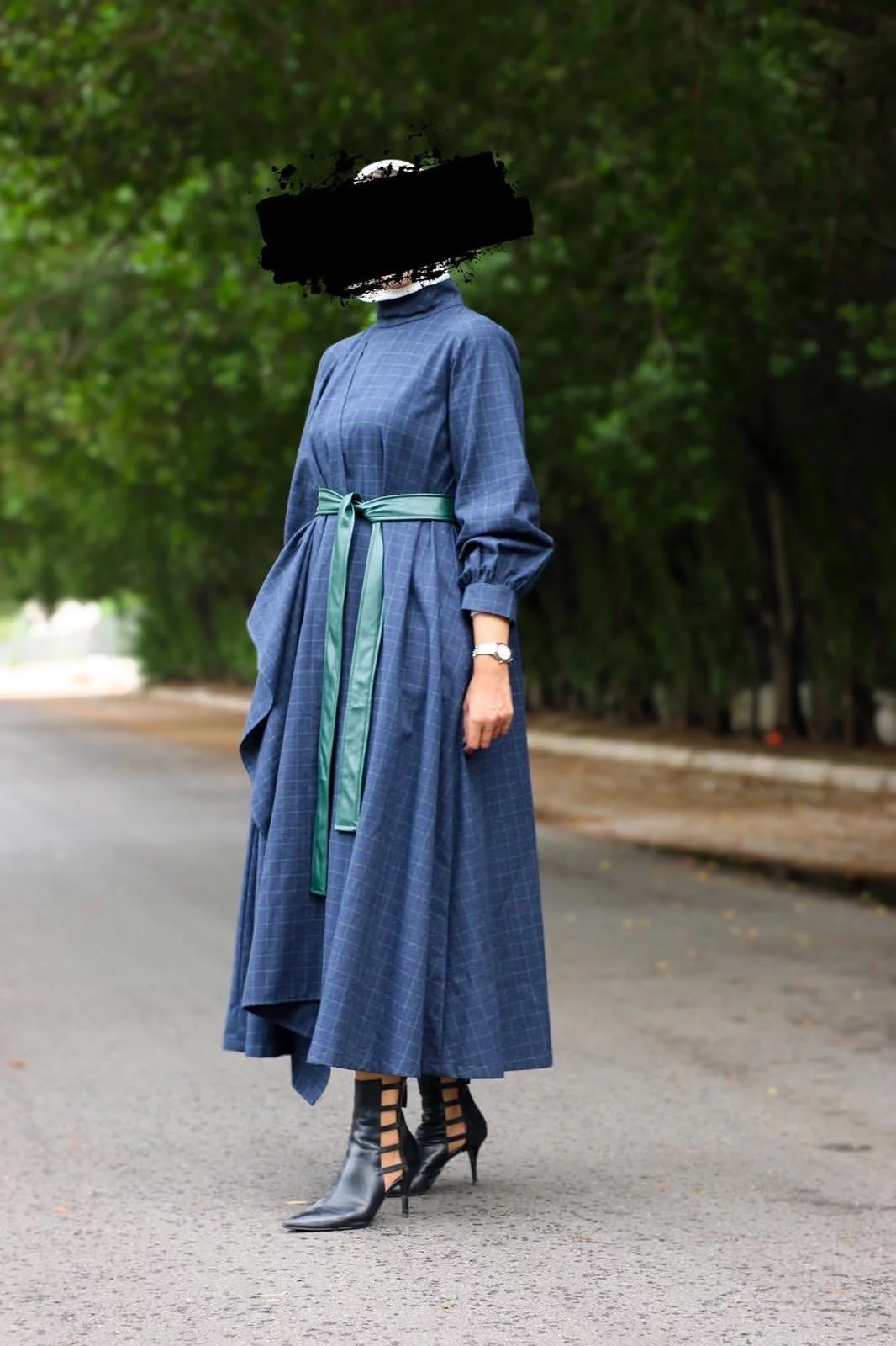 Dress with a leather belt