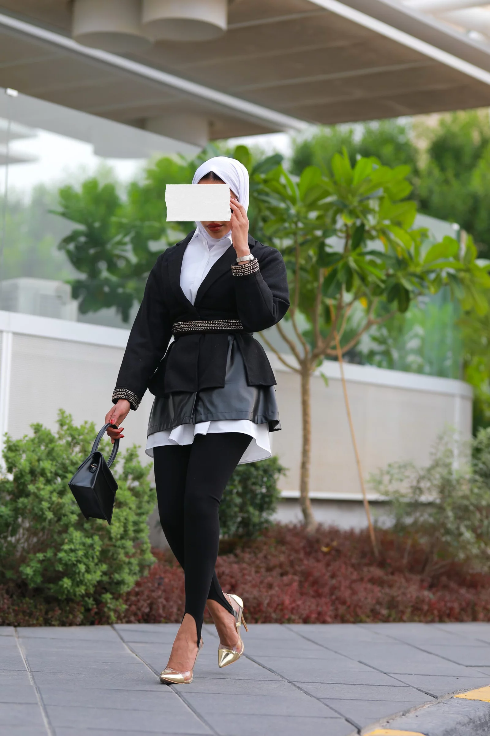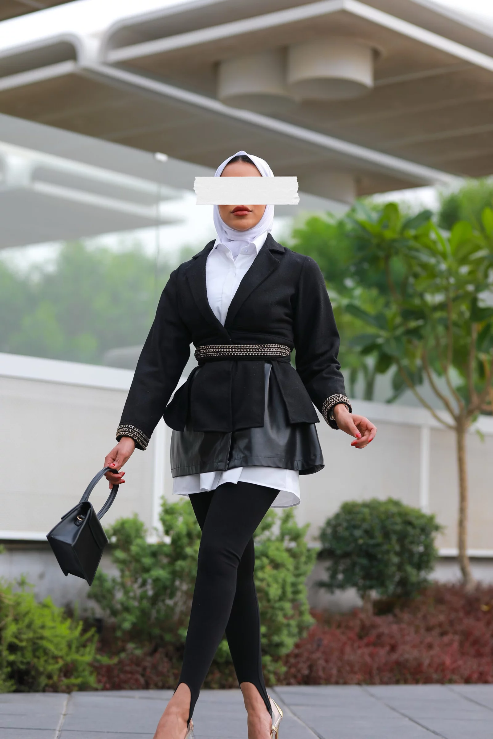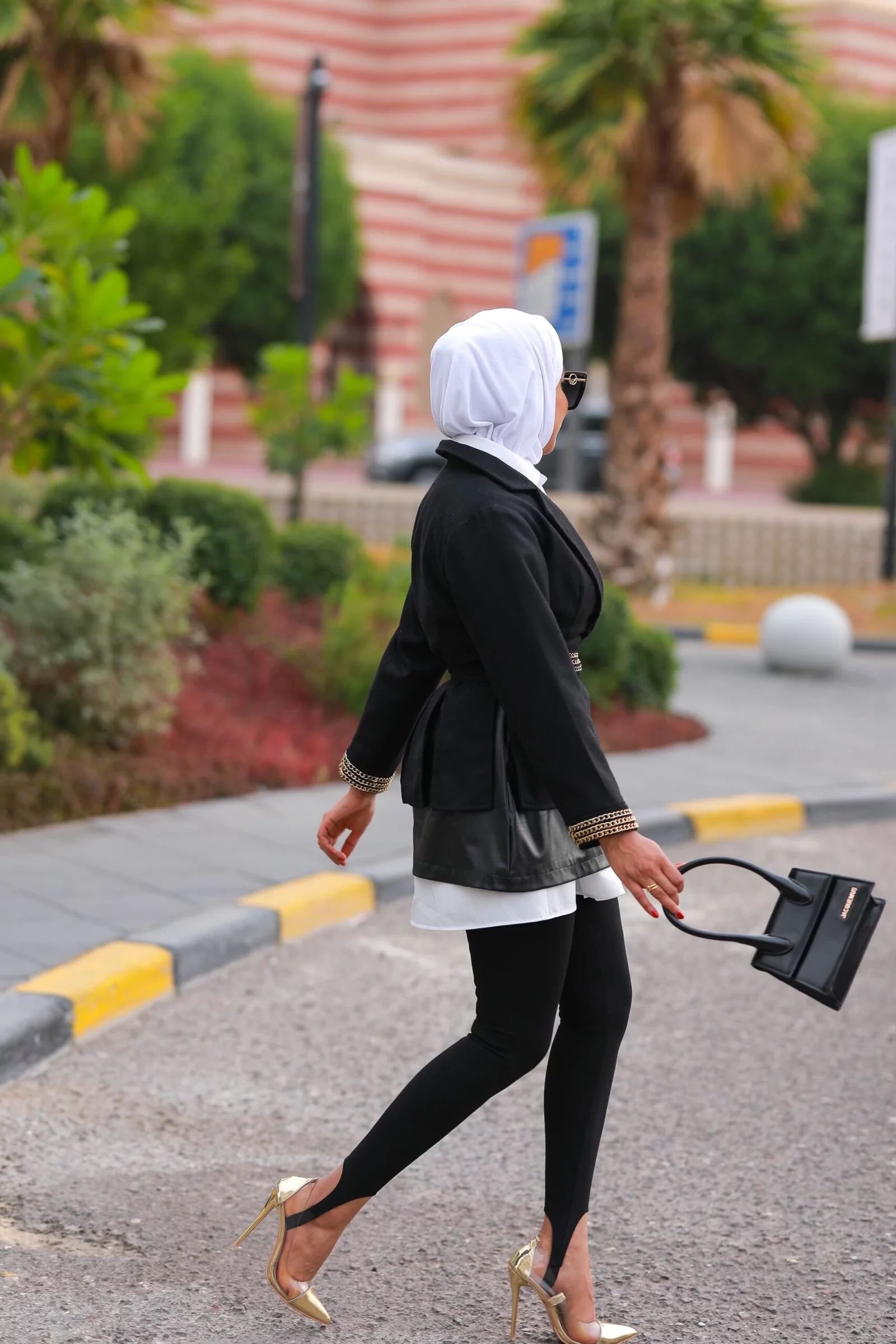 Jacket with a white and black hall