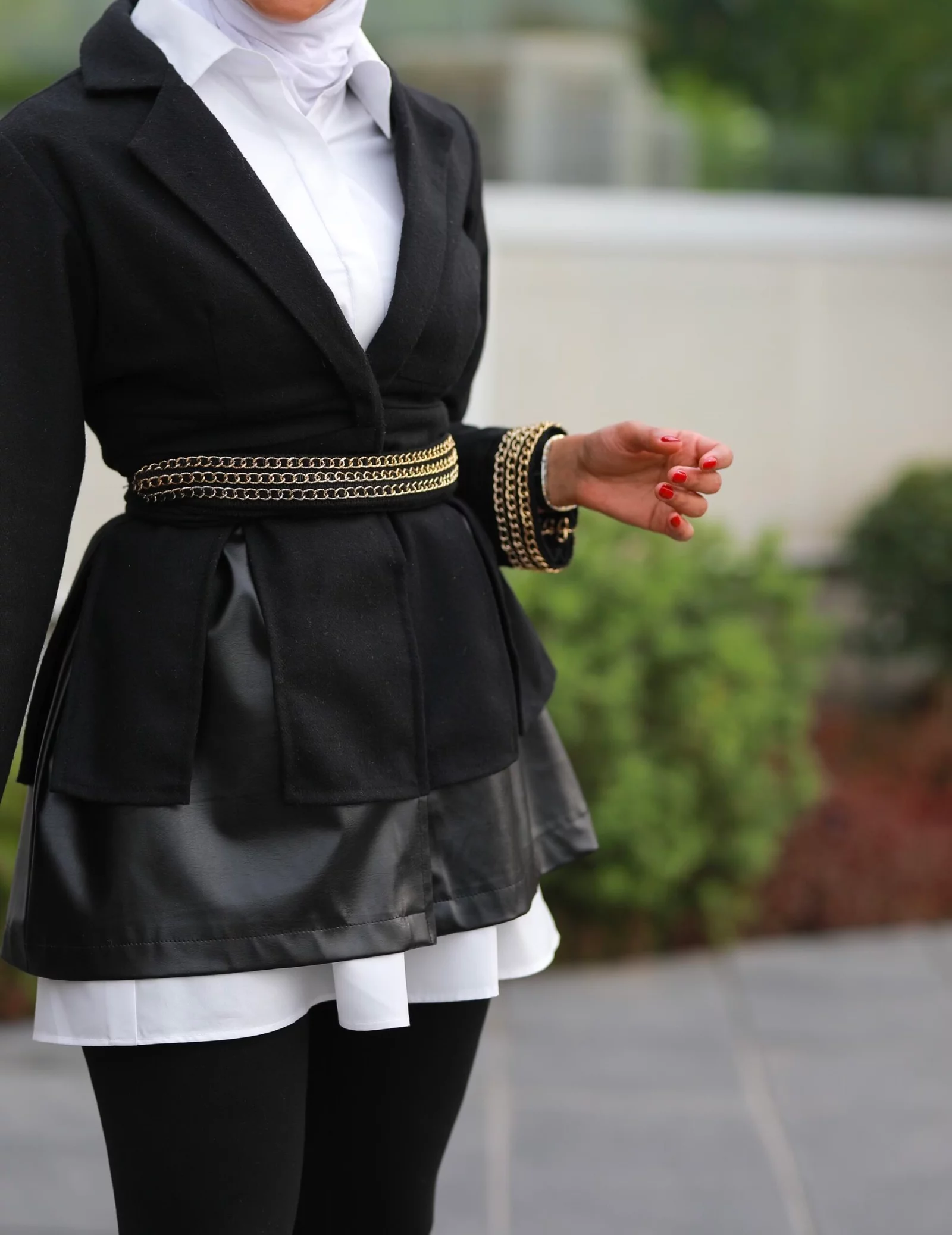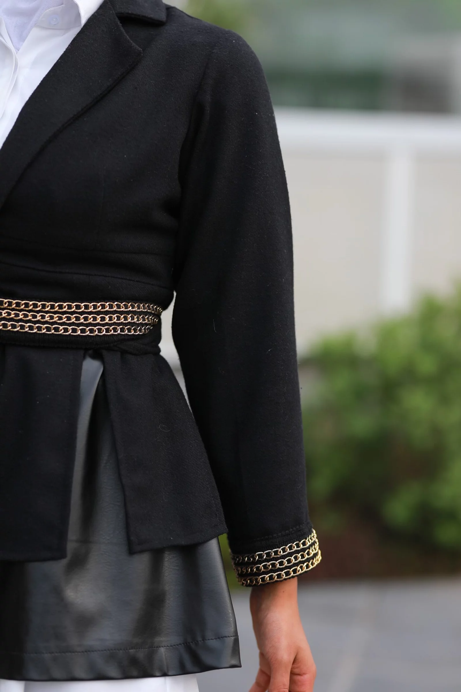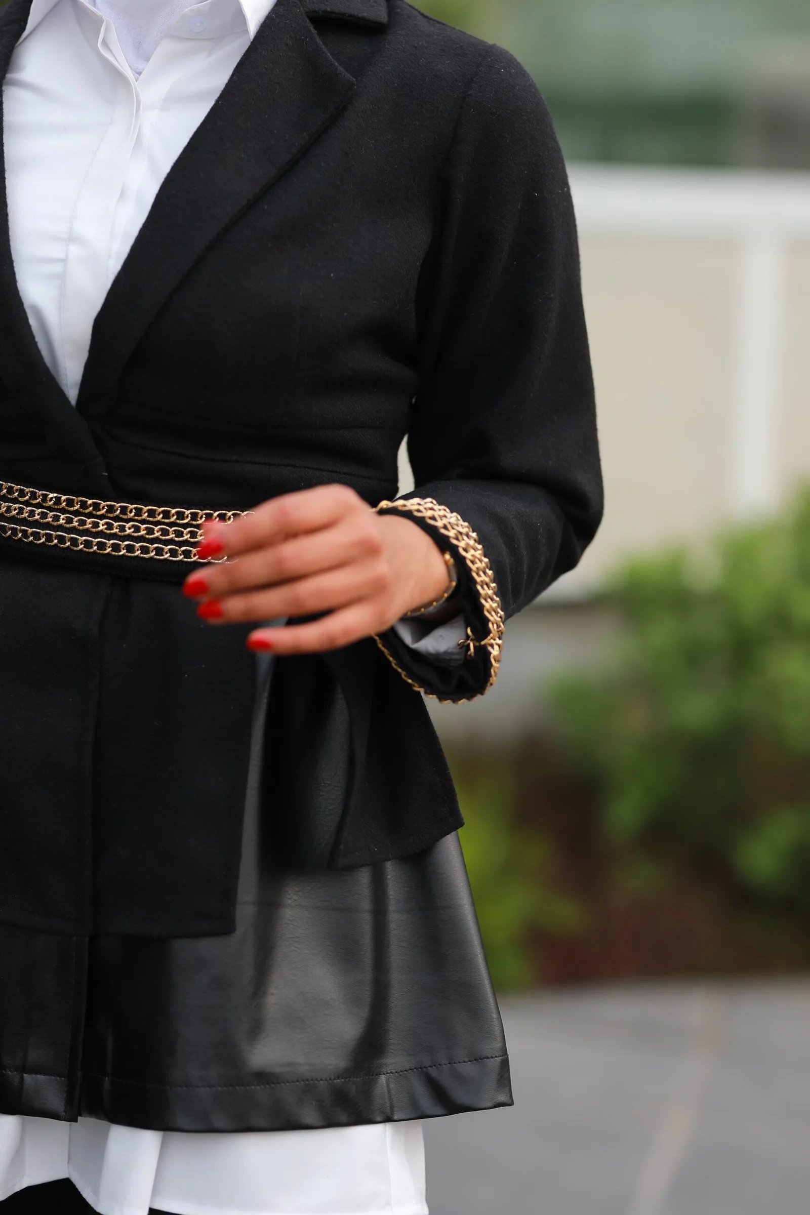 A jacket with leather and a thorny jacket. You can choose the length