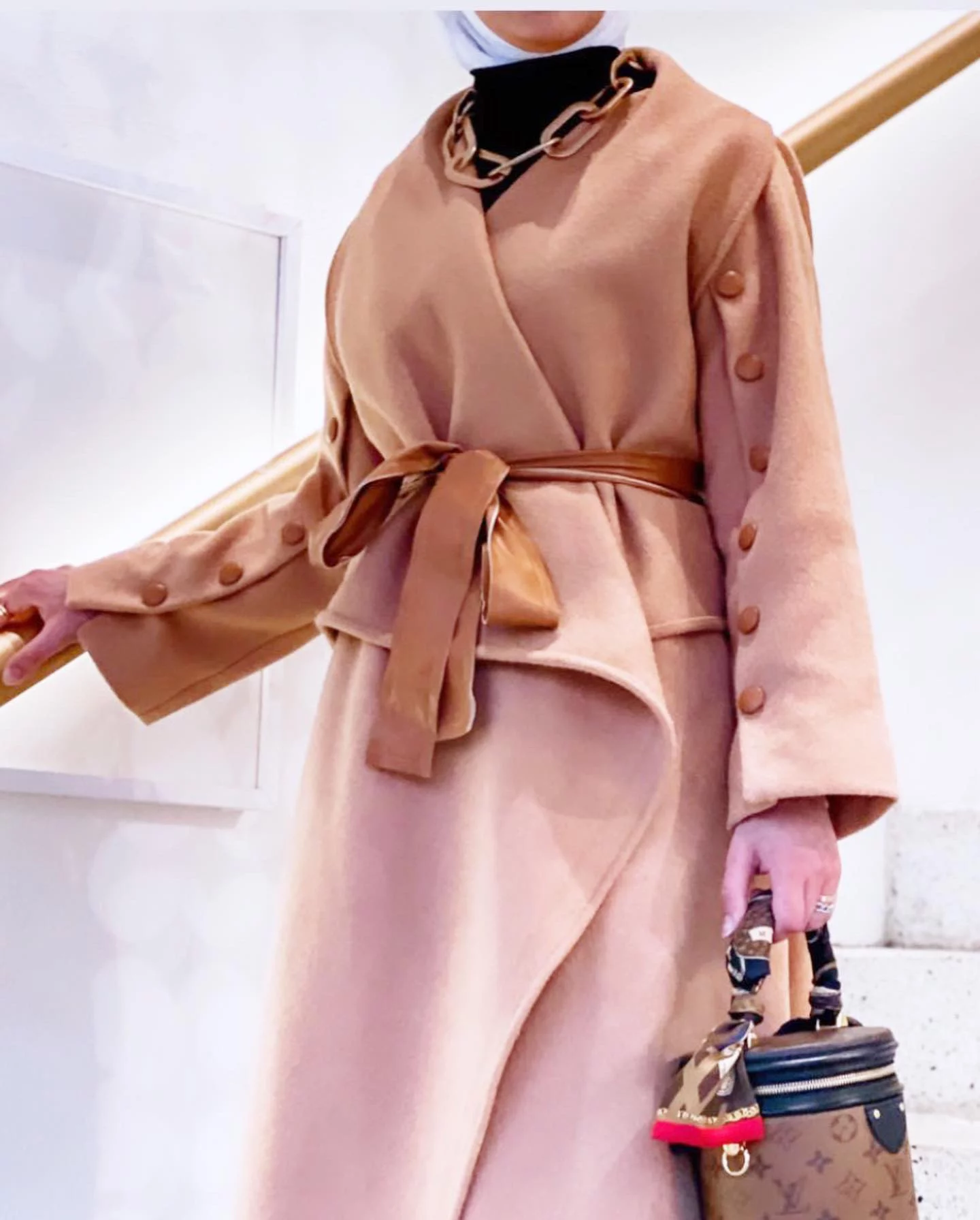 A two -piece jacket and photographed by Ruphi Rubaie jacket size