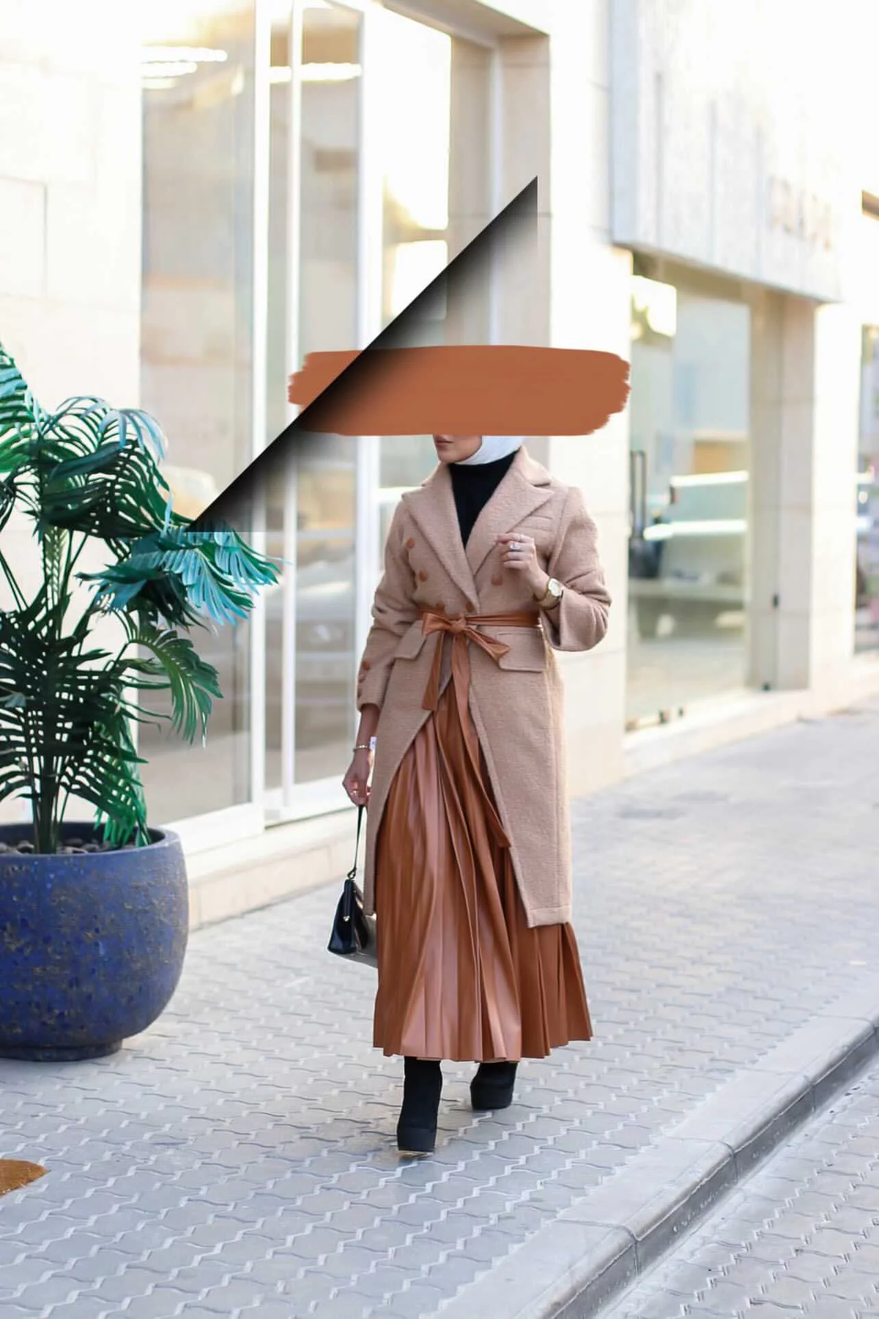 Long trench coat, black-gray color, with a belt, you can choose the length