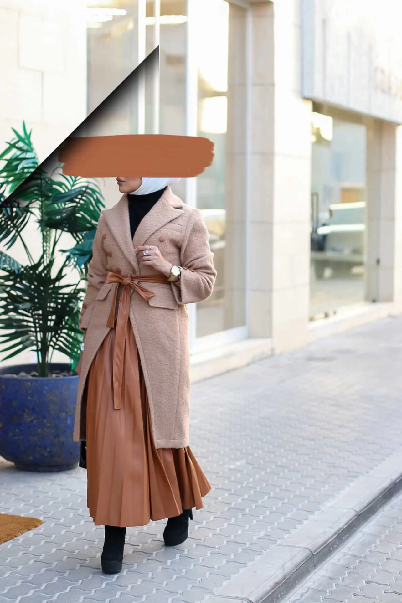 Teddy bear jacket with leather skirt