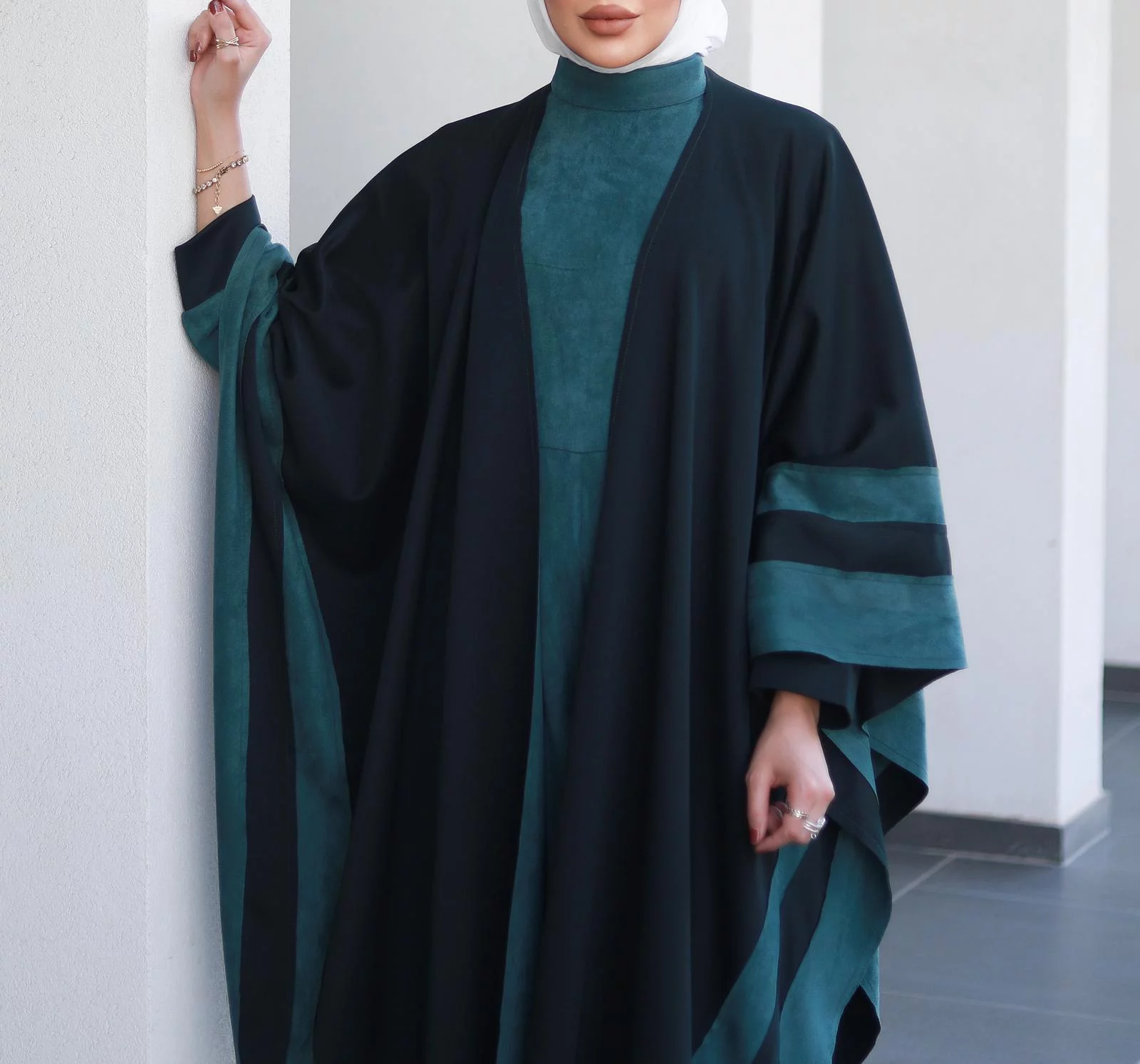 Two-piece suit, cape dress with fur, available in various colors