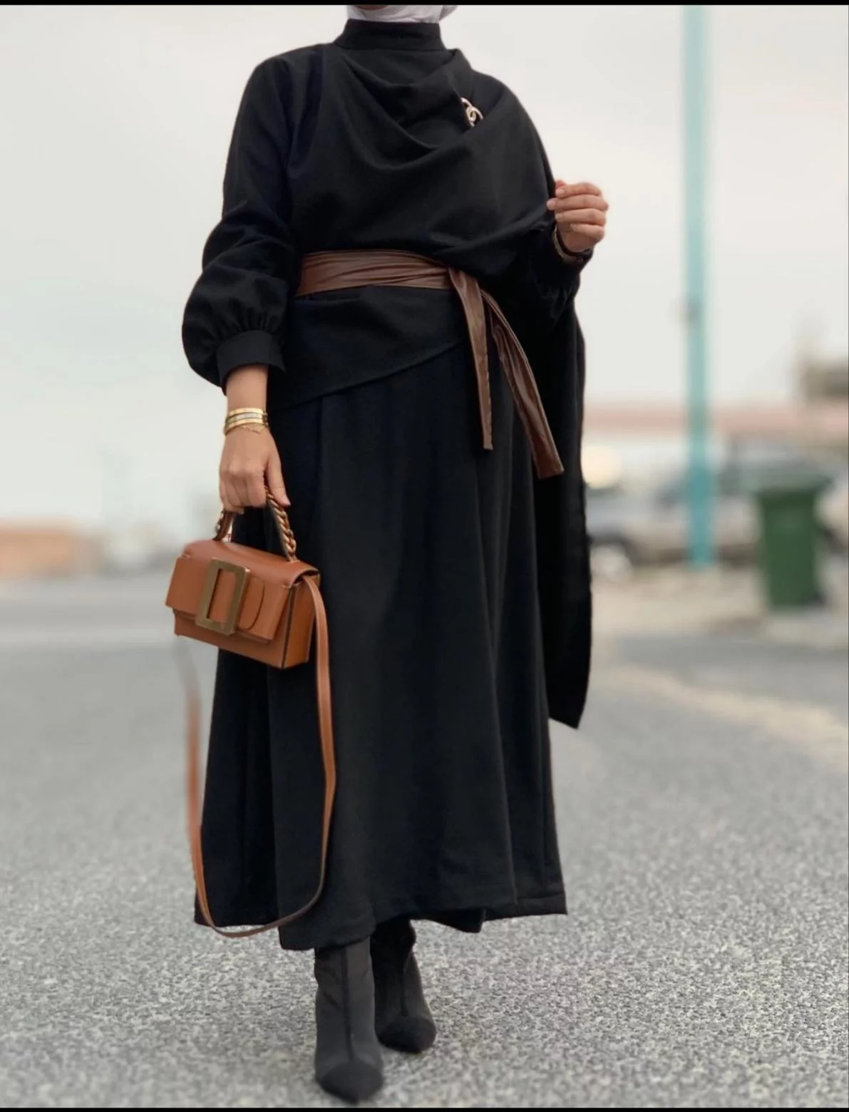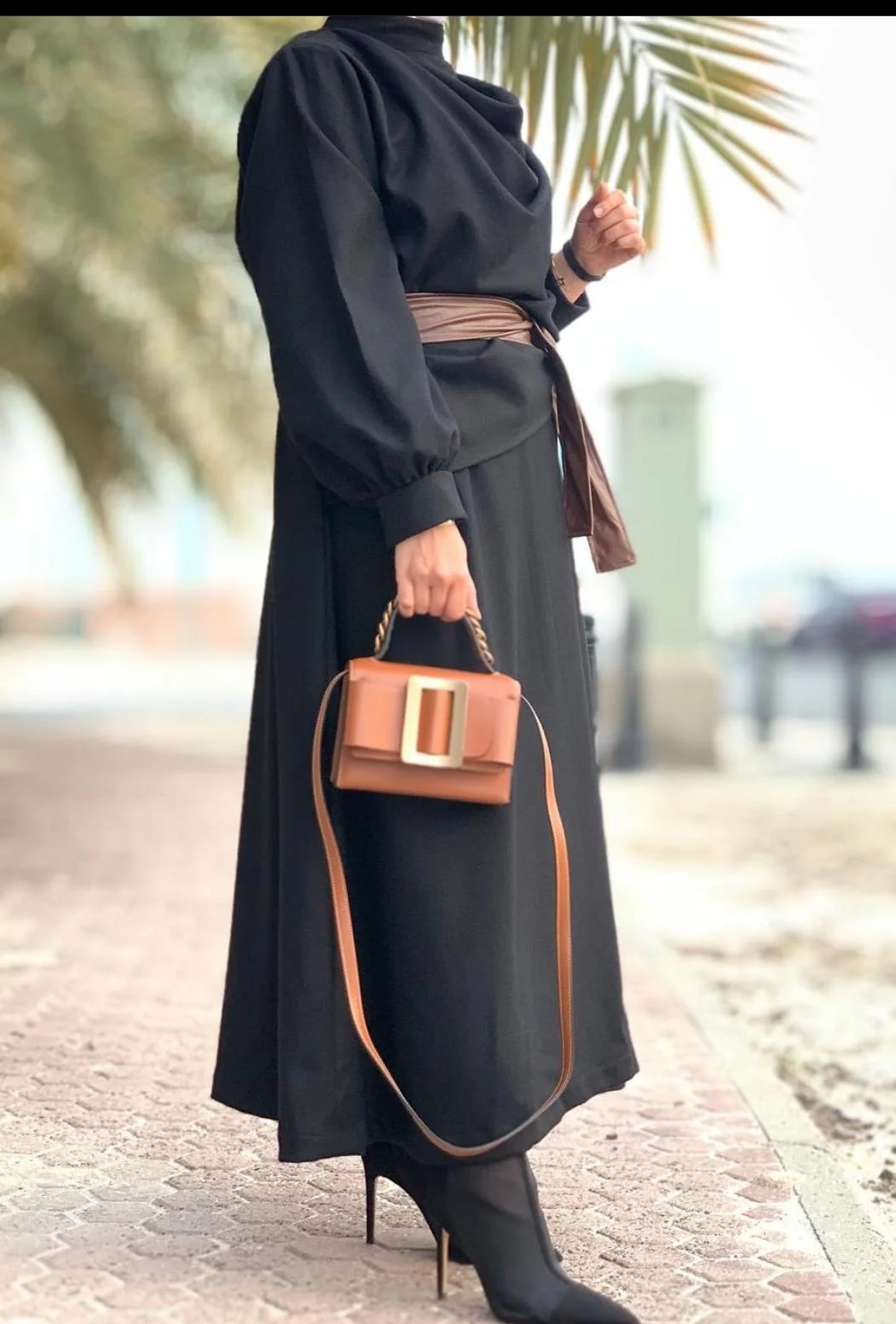 Dress with leather belt
