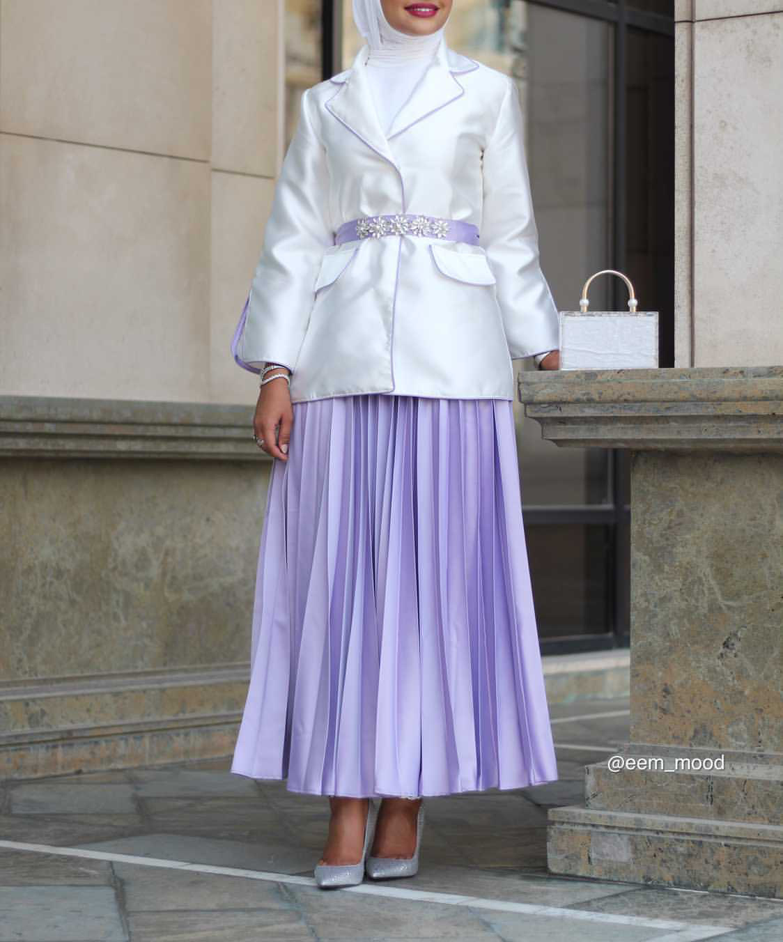 Jacket with a skirt and a crystal belt available in two colors