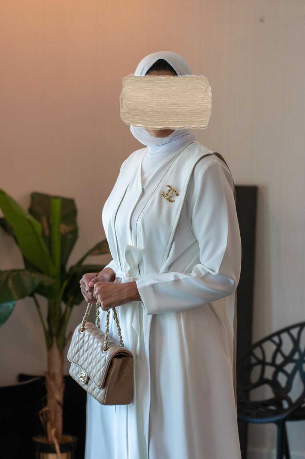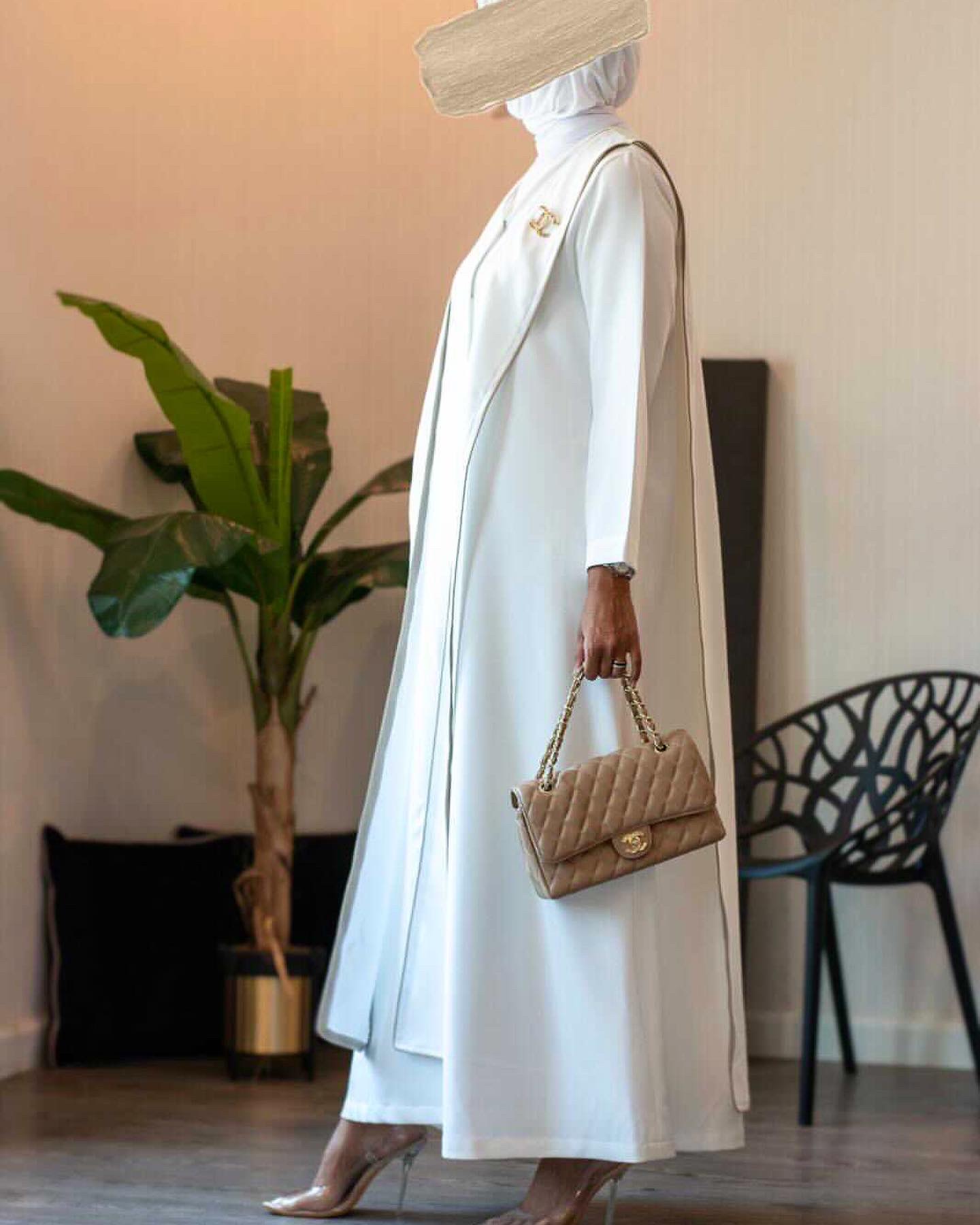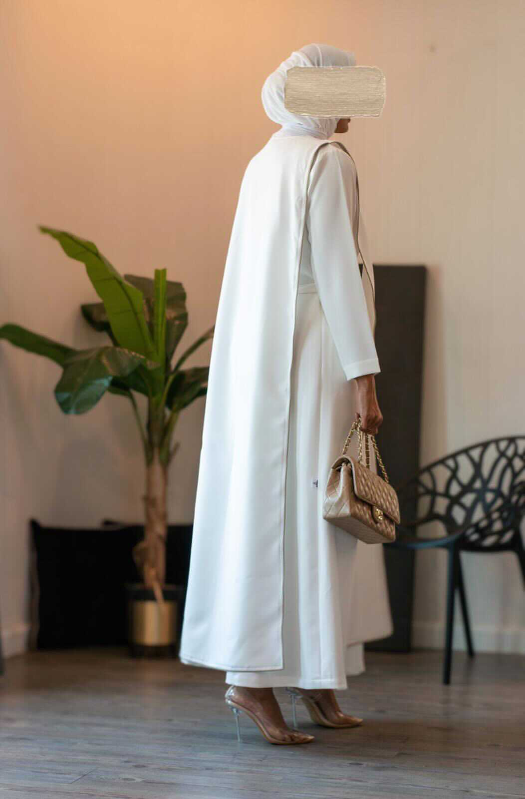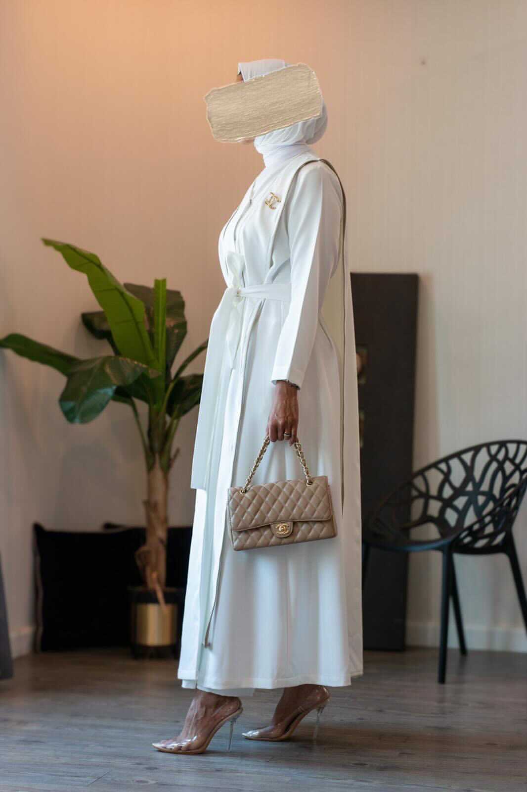 A 3-piece suit with a belt. You can choose a dress or pants. Available in two colors